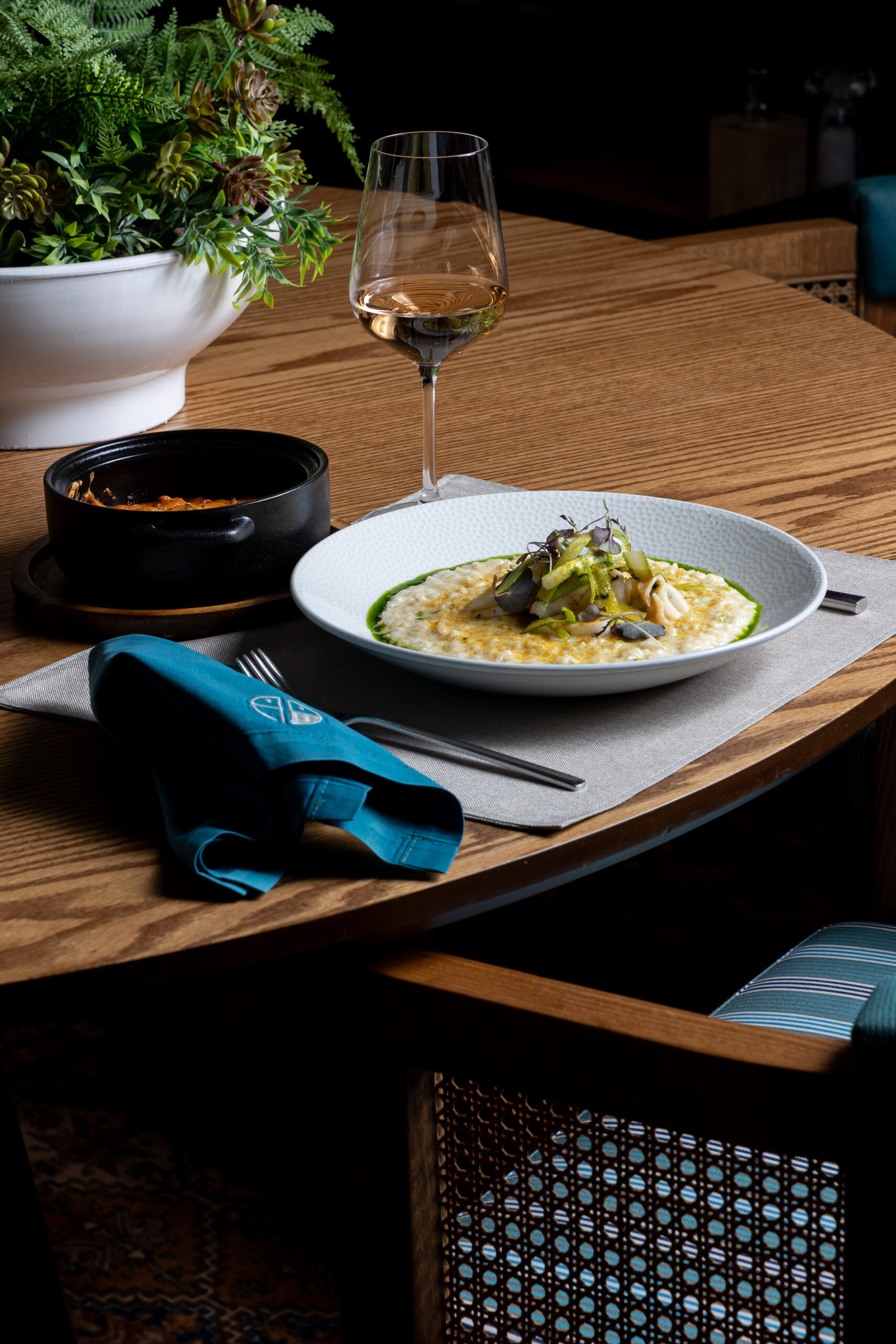 Ξεχωριστό, πιάτο όλο νοστιμιά και αυθάδεια, τα Νιόκι φάβας με χταπόδι και ψαρόζουμο δηλαδή το κρεμμυδόζουμο -ένα τυπικό υλικό της Χαλκιδικής. Τα νιόκι τα έφτιαξε ο σεφ στο τηγάνι και κράτησαν όλη την πυκνή γήινη γεύση τους για να έλθει το χταπόδι και να ανεβάσει τις στροφές της γεύσης. Άλλο ένα πιάτο που μας άρεσε για το σεβασμό στην ανάδειξη της ιδιαίτερης γεύσης της πρώτης ύλης ήταν το Πετρομπάρμπουνο ημέρας με φρέσκο κρεμμυδάκι και ξύσμα lime. Μια ντελικάτη θαλασσινή νοστιμιά. Το μαγαζί, προσφέρει στους πελάτες του και διεθνή ντελικατέσεν, όπως Στρείδια Βρετάνης (ωμά), το δυσεύρετο ελληνικό Χαβιάρι Άρτας και Βασιλικά χτένια με βούτυρο noisette και κρέμα μαύρου σκόρδου. Το Γαλακτομπούρεκο με παγωτό κανέλας κυριαρχούσε στα περισσότερα τραπέζια, αλλά εμάς μας γοήτευσε η ανάλαφρη Pavlova με παρφέ φιστίκι, κρέμα mascarpone και κόκκινα φρούτα όπως και το Semifreddo λεμόνι με λευκή σοκολάτα, matcha, mango και passion fruit. Περισσότερες από 150 ετικέτες κρασιών και μεγάλη ποικιλία από αποστάγματα.
