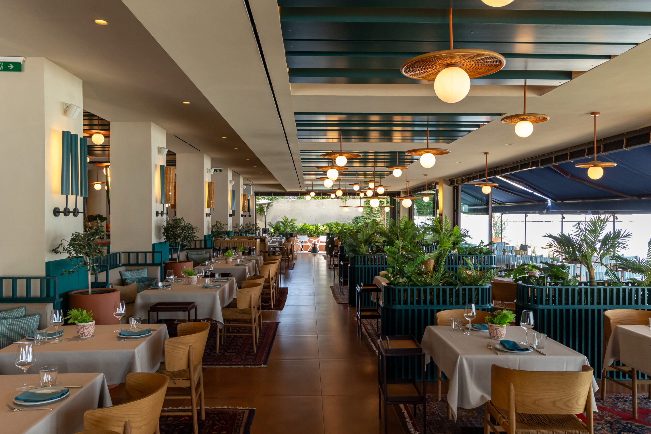 Ένα πολύ όμορφο, πολύ κομψό και πολύ αεράτο εστιατόριο, πάνω στην αμμουδιά, με θέα σχεδόν σε όλη την πόλη και με «αυλή» του τον απέραντο Θερμαϊκό. Βεβαίως, ο Τσιτσάνης στο πασίγνωστο τραγούδι του «Μπαξέ Τσιφλίκι» λέει «πάμε τσάρκα πέρα στο Καραμπουρνάκι» όπως λεγόταν παλιά η περιοχή και όχι πάμε τσάρκα στην Ακτή Ντοβίλ (από την ομώνυμη κοσμοπολίτικη γαλλική πόλη) που ήταν αγαπημένος τόπος παραθερισμού για τους Θεσσαλονικείς τις δεκαετίες του ‘60 και του ‘70. Πίσω στο υπέροχο εστιατόριο όμως, έργο του αρχιτεκτονικού γραφείου Minas Kosmidis Architects και ιδιοκτησίας του ομίλου επιχειρήσεων εστίασης του Ηλία Βιολίδη με συνεργάτες τον Γιώργο Καραπαπάζογλου και τον Σάκη Γκοντινό (Tribeca).
