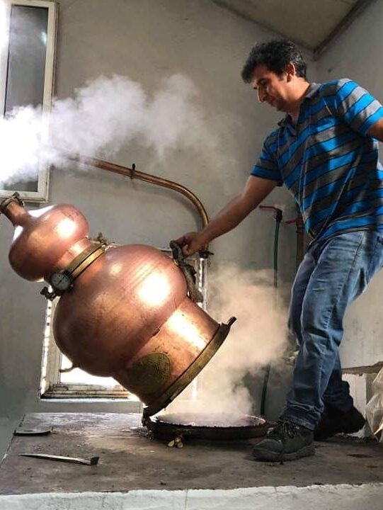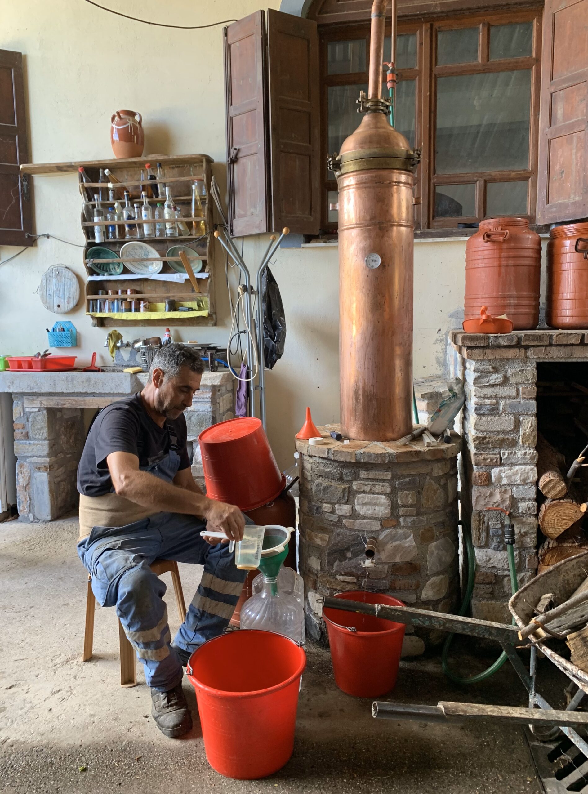 Υπάρχουν πλέον αποστακτήρια πιο φαντεζί, σύγχρονα και σενιαρισμένα, ωστόσο το γλέντι και το τζέρτζελο διαχρονικά εμφιλοχωρούν στα παραδοσιακά καζάνια. Παραδοσιακά καζάνια -ήτοι αυτοσχέδιες αποθήκες και καλυβοειδή με διάσπαρτα συμπράγκαλα και ασύνδετα μεταξύ τους αντικείμενα να κρέμονται στους τοίχους, η γλυκιά μυρωδιά από κυδώνια που σιγοψήνονται στη φωτιά και η αψάδα των ζυμωμένων τσίπουρων αρωματίζουν την ατμόσφαιρα, και οι παραφωνίες των μεθυσμένων γεμίζουν τον χώρο με γέλιο. Οι πιο εξωστρεφείς γλεντζέδες πιάνουν θέση δίπλα στους μουσικούς για να δίνουν παλμό και να σιγοντάρουν το κέφι, ένας σουρωμένος επισκέπτης κόβει βόλτες με μια κανάτα στο χέρι κερνώντας σούμα και εύστροφες ατάκες, ενώ το ξεριζωμένο κυκλάμινο που διακοσμεί το πετρογκάζ προσδίδει μια νότα σουρεαλισμού στο Διονυσιακό σκηνικό.