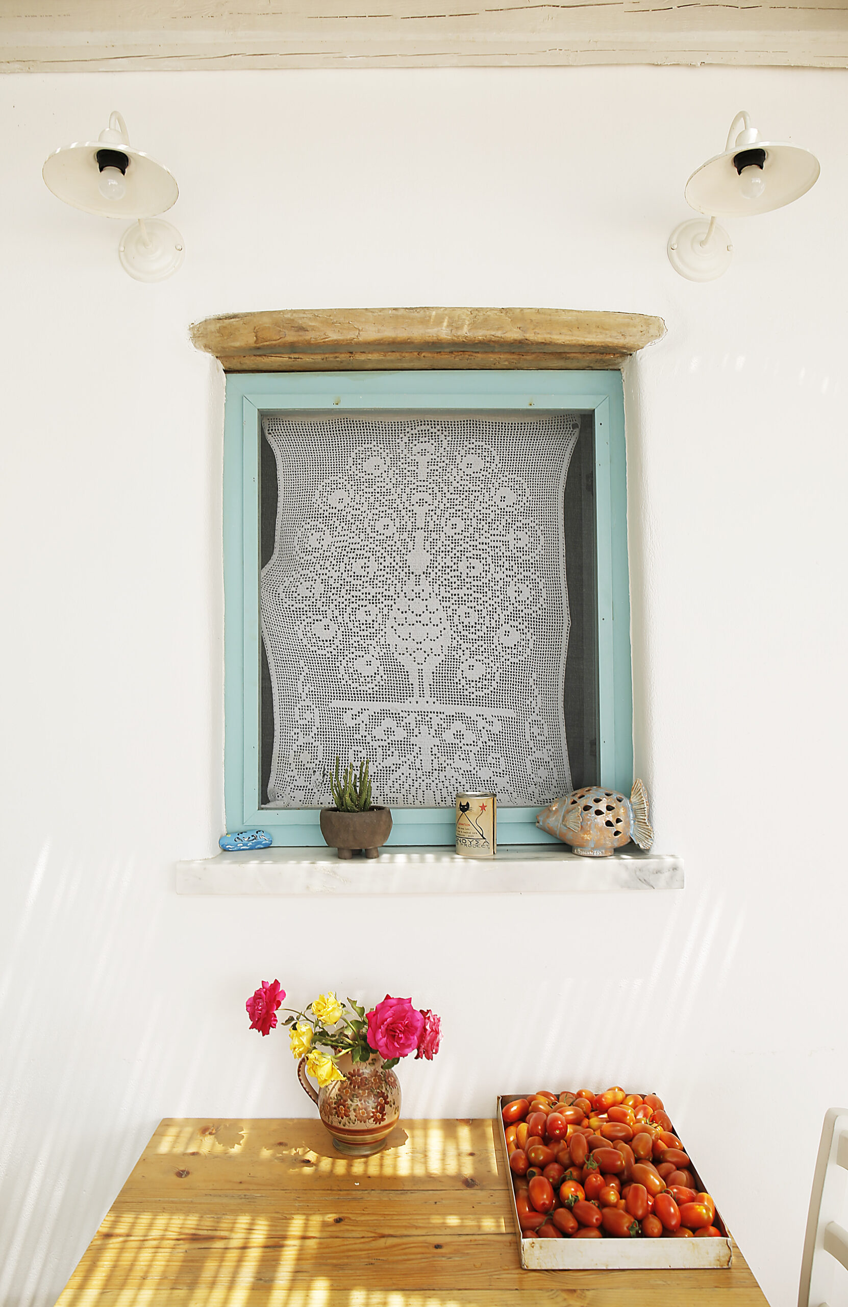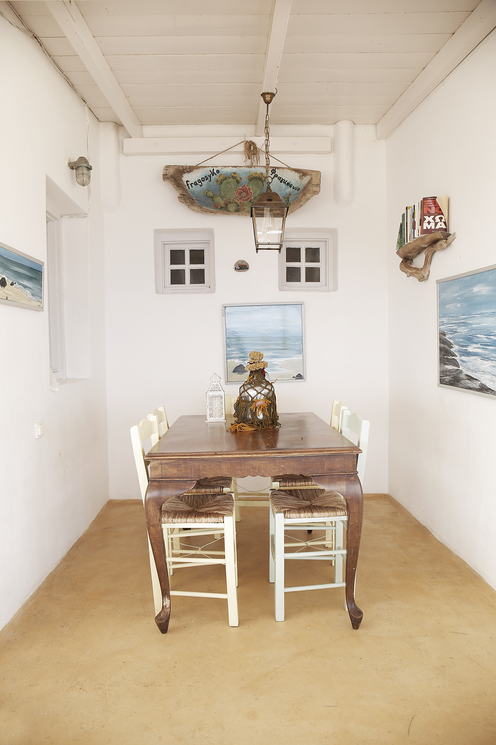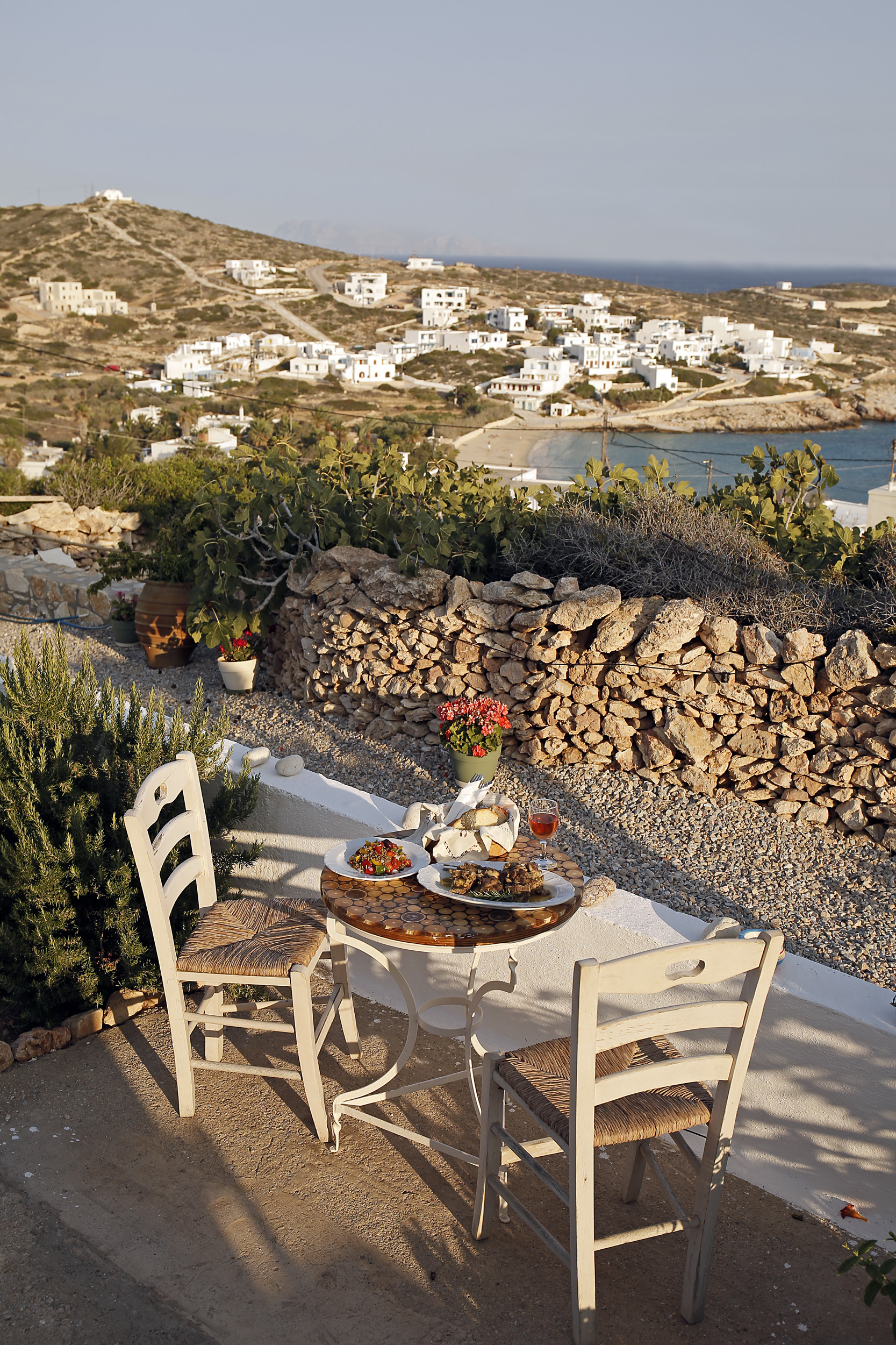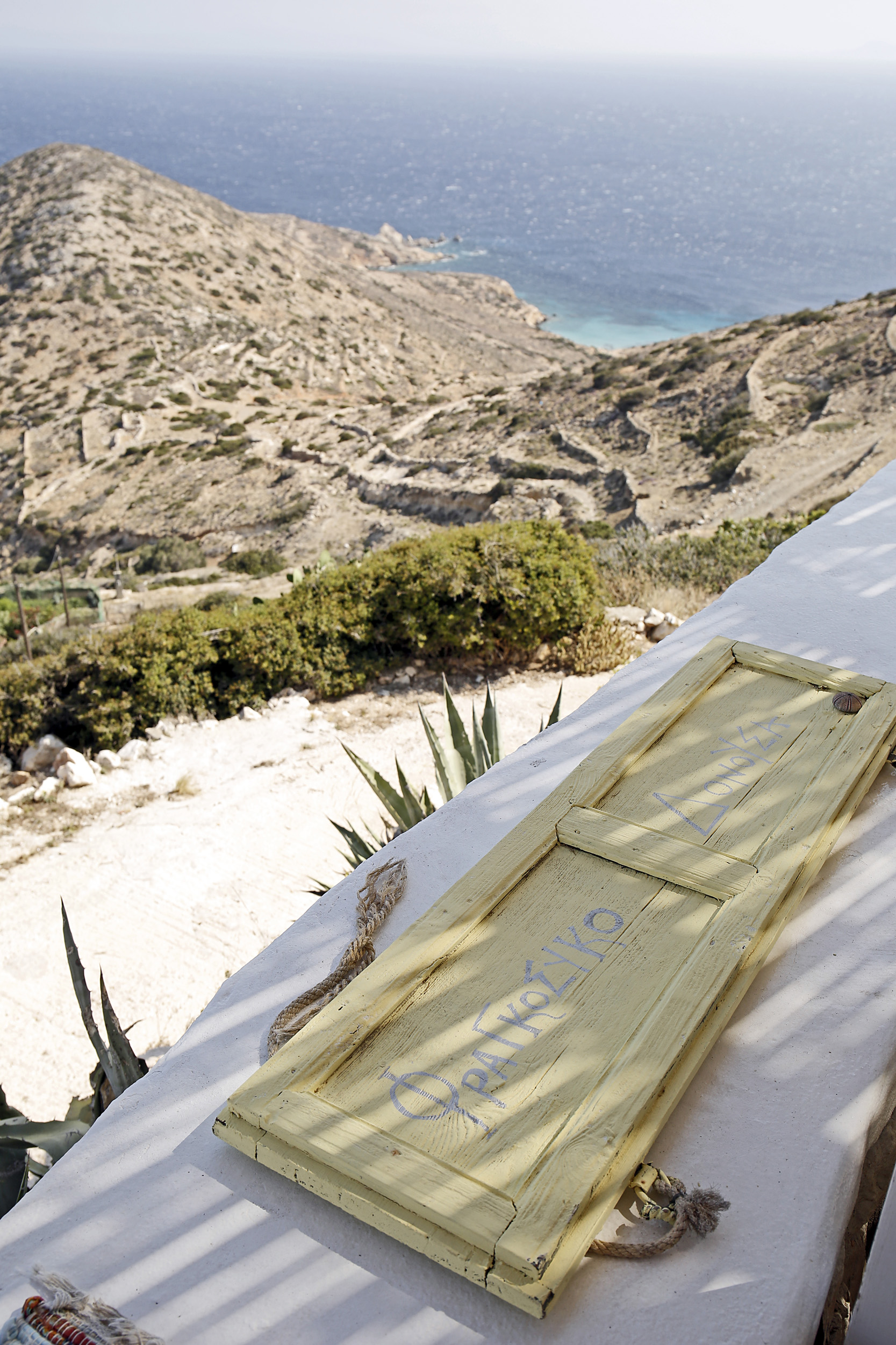 Δεξιά της βεράντας με τη φανταστική θέα, ο ήλιος κόβει τις τελευταίες σκιές. Η συνθήκη είναι απλή. Από το 2014 η Χρύσα, η οποία ήρθε στο νησί ως τουρίστρια, βρήκε το οίκημα, το νοίκιασε, έμεινε σε αυτό εξοπλίζοντας το παράλληλα σιγά σιγά και ξεκίνησε να φτιάχνει μεζέδες για φίλους. Έχοντας μνήμες από τη γιαγιά της και τη θεία της οι οποίες ήταν επαγγελματίες μαγείρισσες, άρχισε να εμπλουτίζει τον κατάλογο με συνταγές πρωτότυπες αλλά και εμπνεύσεις δικές της. Ετοιμάζει 7-8 φαγητά καθημερινά, πίτες με μυζήθρα, λαχανικά, πιπεριές πολύχρωμες, ιμάμ, σουτζουκάκια σμυρναίικα, σουπιές, χταπόδι, αλλά και το σουξέ της, το απίθανο τσιγαριαστό. Όλα αυτά συνοδεία κρητικής ρακής και, κάποιες φορές, αυθόρμητης ζωντανής μουσικής που μεγενθύνει τη Δονουσιώτικη νύχτα.
