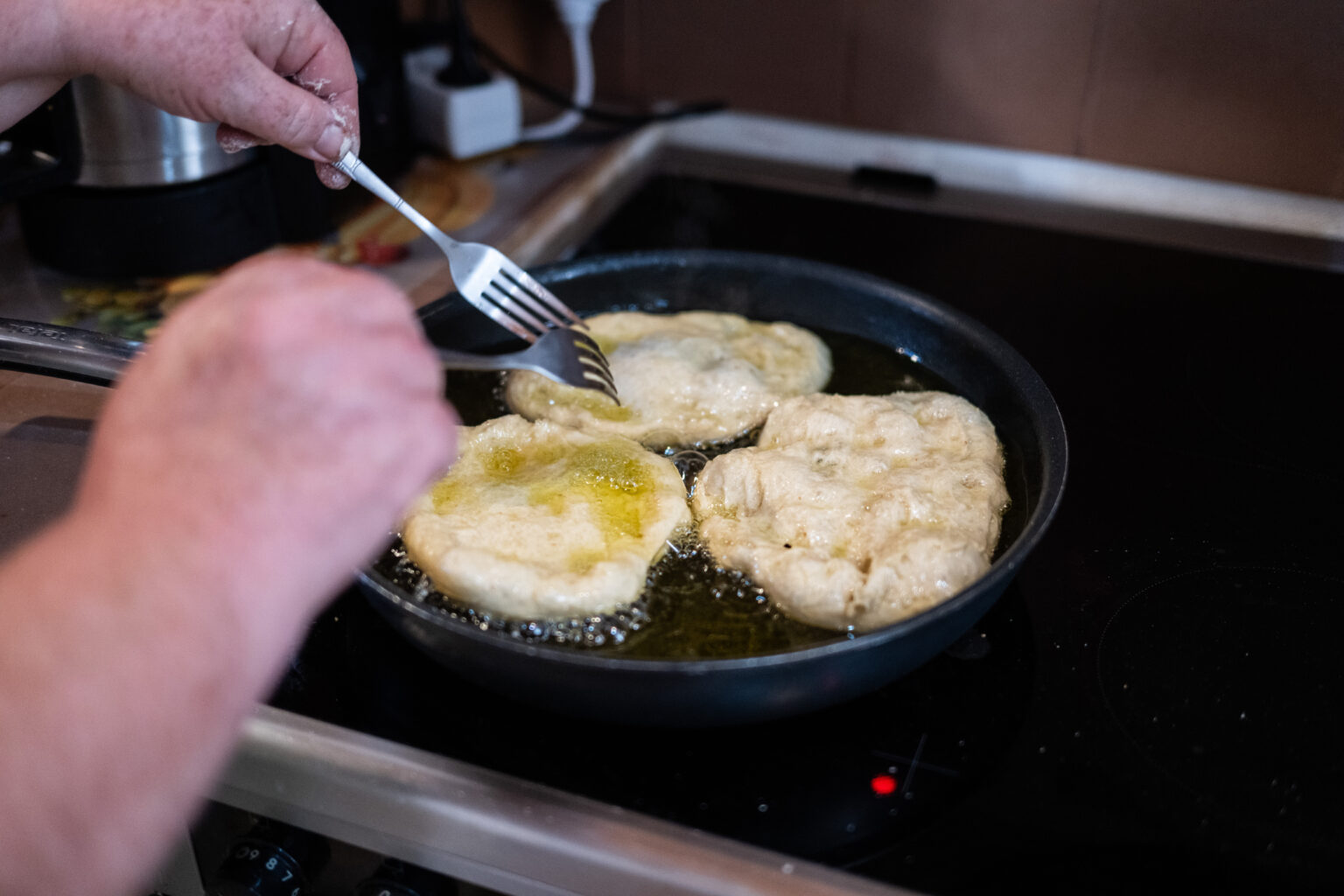Καθώς το ζεστό κομμάτι έλιωνε στο στόμα, οι αναμνήσεις ξεπήδησαν ζωντανές από τα βάθη της παιδικής ηλικίας. Εκείνες τις Παρασκευές, και ενώ η μητέρα μου ζύμωνε για την εβδομάδα, κρατούσε πάντα λίγο ζυμάρι στην άκρη. Αυτό το μικρό κομμάτι ζύμης μεταμορφωνόταν σε μαγικό τρόπο σε τηγανόψωμα -ή «λαλαγκόψωμα» όπως τα λέμε επίσης στη Δυτική Μεσσηνία.