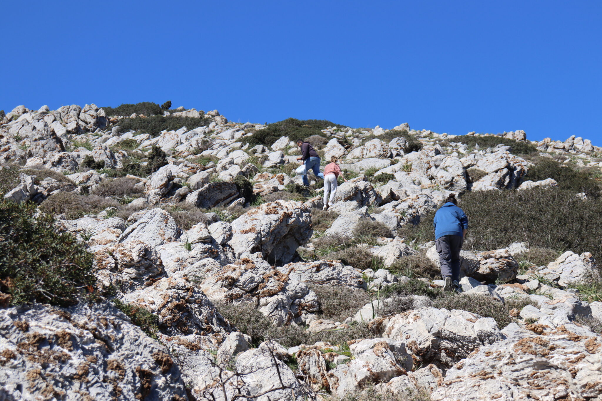Για εμάς τους αμύητους χρειάστηκε λίγος χρόνος μέχρις ότου τα μάτια συνηθίσουν και σταδιακά να αρχίσουν να ξεχωρίζουν τα ζητούμενα χορταρικά από τα υπόλοιπα αγριόχορτα. Όσα δεν αναγνωρίζαμε, τα αφήναμε στην ησυχία τους. Οι μυημένοι της αποστολής μάζευαν αγριοράδικα, μερικές βρώσιμες γαλατσίδες και κάποια άλλα πράσινα των οποίων τα ονόματα δεν σημειώθηκαν και χάθηκαν.