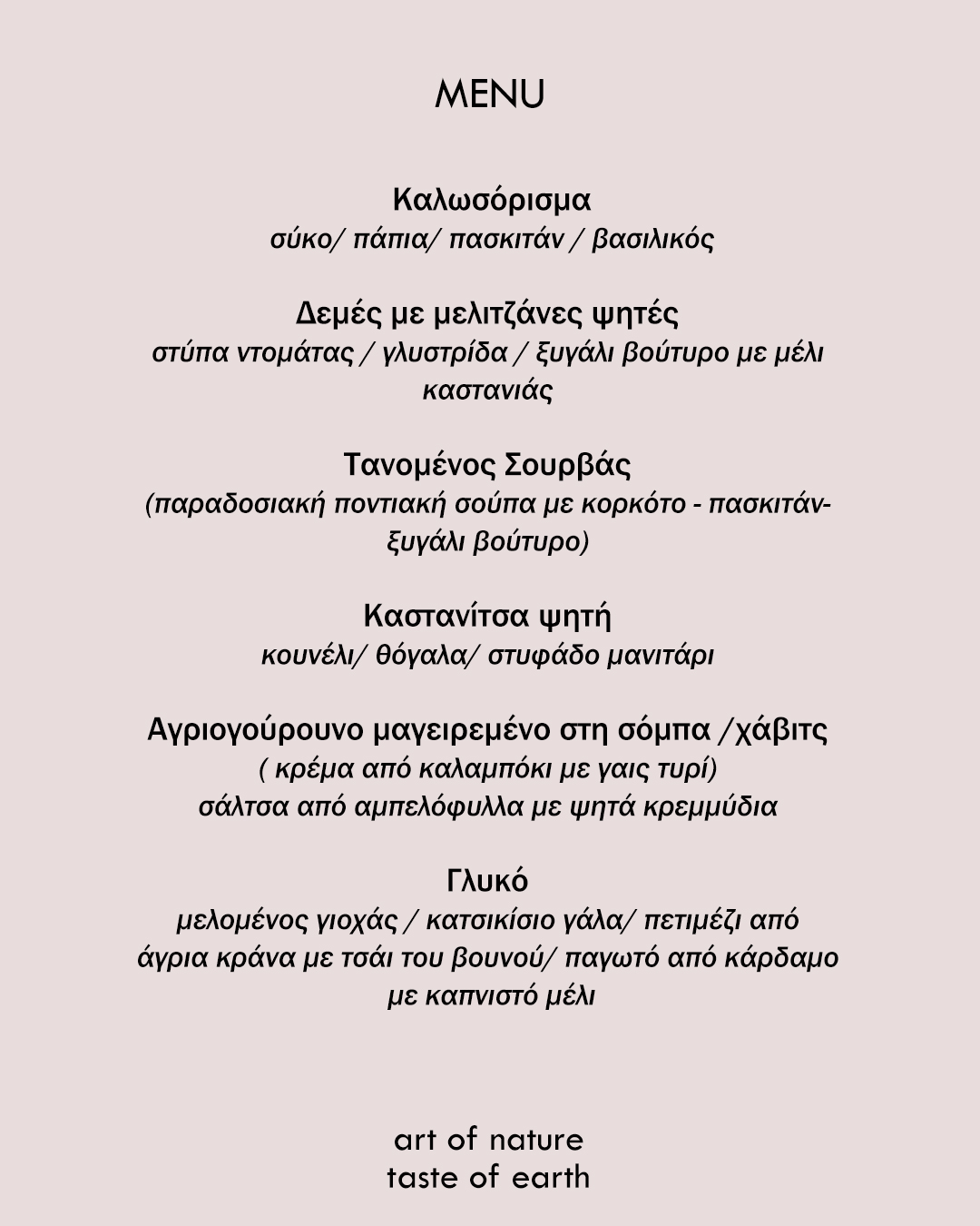 Ζήστε μια ημέρα γεμάτη χρώμα, έμπνευση, δημιουργία και γεύσεις που θα σας μείνουν αξέχαστες, σε έναν χώρο όπου η φύση συναντά την τέχνη και τη γαστρονομία.