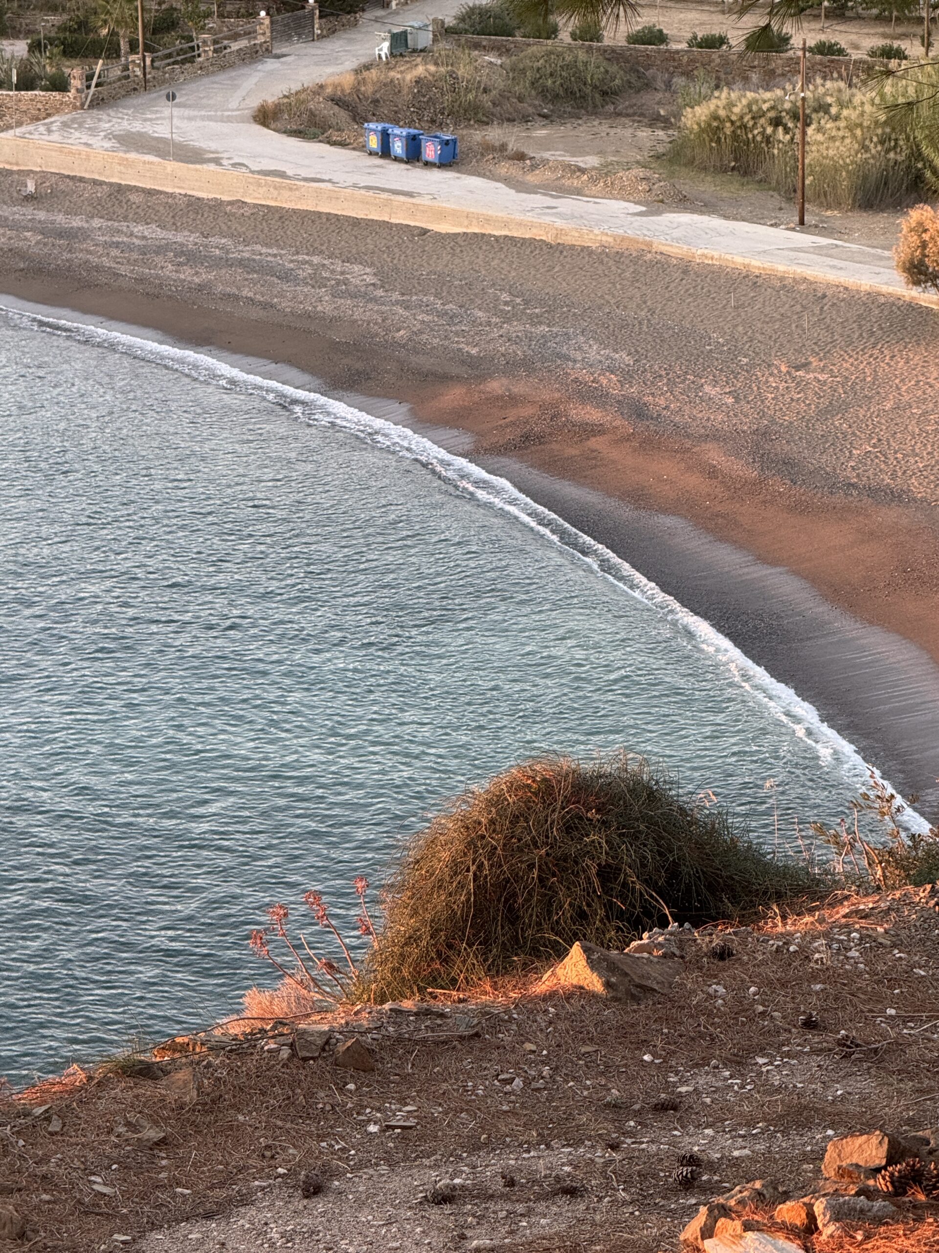 Το θέαμα είναι μαγευτικό: ο ήλιος βυθίζεται αργά στο Αιγαίο, βάφοντας τον ουρανό σε αποχρώσεις χρυσού και ροζ, ενώ κάτω απλώνεται η ειδυλλιακή παραλία. Τα καλαίσθητα καταλύματα, εναρμονισμένα με το φυσικό τοπίο, συμπληρώνουν την εικόνα ενός επίγειου παραδείσου. Η σκέψη είναι αναπόφευκτη και κοινή για όλους μας -το επόμενο καλοκαίρι θα μας βρει ξανά εδώ, σε αυτή τη μαγευτική γωνιά της Χίου.