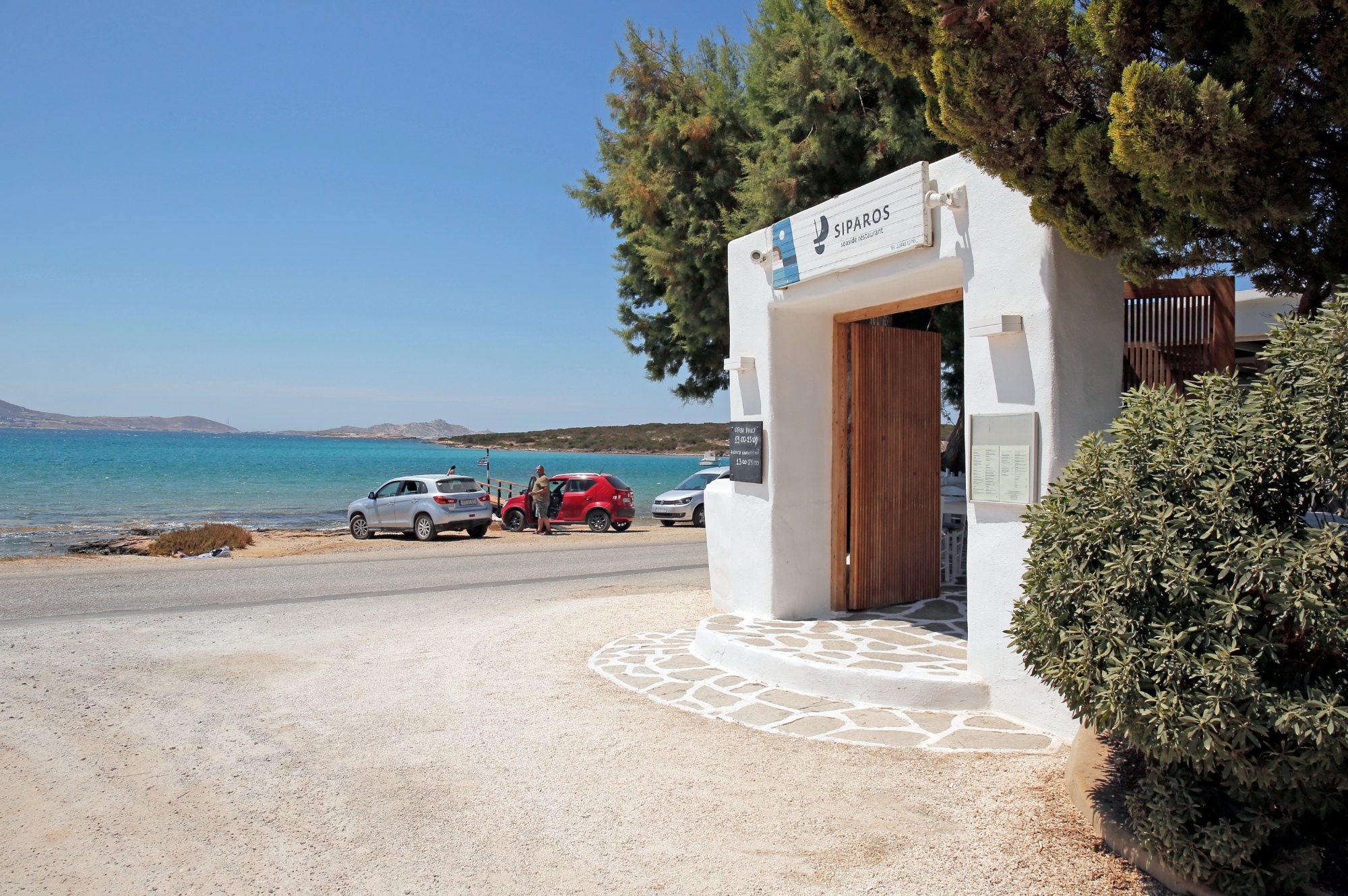 Siparos: Πάνω στη θάλασσα, στο δρόμο προς Σάντα Μαρία, με πολύ-πολύ όμορφη, δροσερή αυλή σε άσπρο-μπλε, πράσινο, και γαλήνια ατμόσφαιρα. Ο σεφ Χρήστος Στέλλας ετοιμάζει καλοφτιαγμένο φαγητό που ποντάρει στα ψάρια και στα θαλασσινά και περιλαμβάνει τοπικές συνταγές όπως η εξαιρετική παριανή ρεβιθάδα σιγομαγειρεμένη στο σκούνταβλο με δεντρολίβανο και σκόρδο. Θαυμάσια η πεσκανδρίτσα με λινγκουίνι, πολύ καλό το καρπάτσιο ψαριού με αχινό και φύκια, ενδιαφέρον το παστίτσιο με ραγού γαρίδας. Βιτρίνα με φρέσκα ψάρια για τηγάνι και σχάρα (2284 052785)
