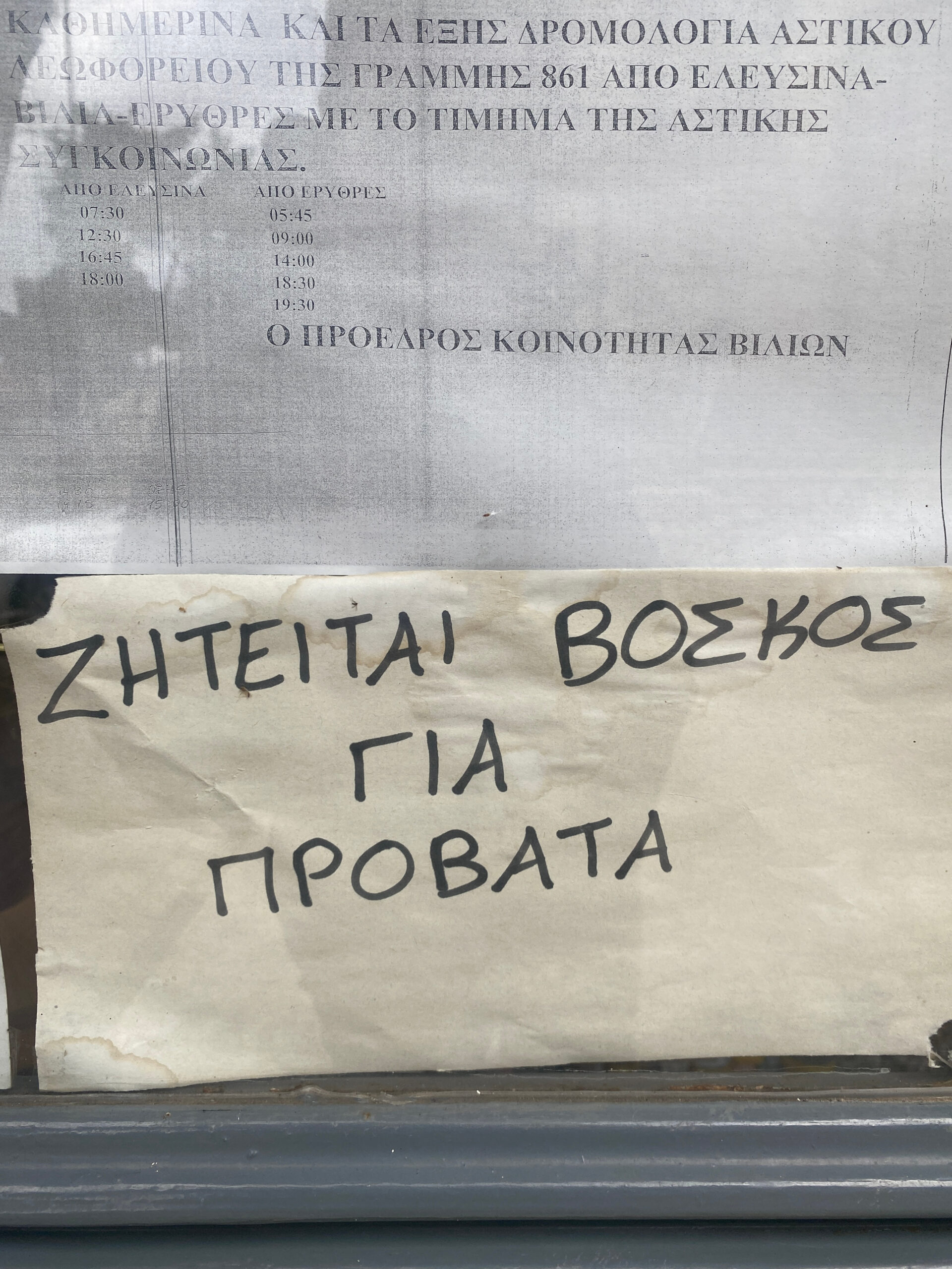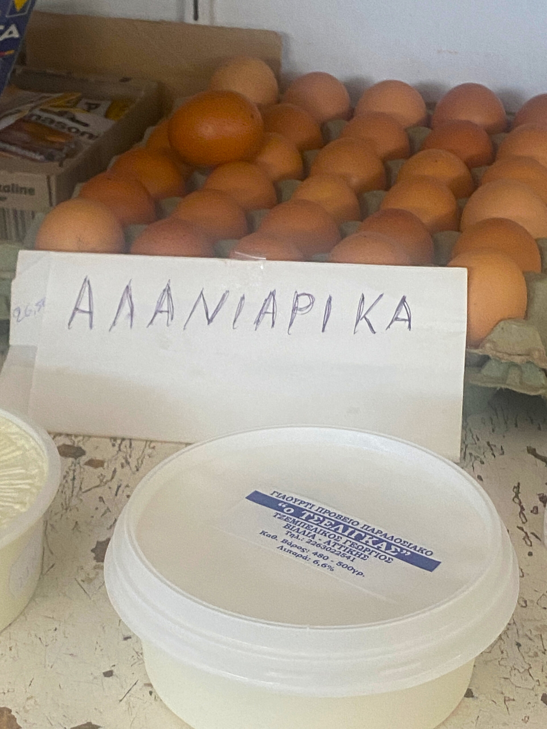 Λίγο αργότερα και αφού τελείωνε την παρασκευή γιαουρτιού και ρυζόγαλου, θα πήγαινε στα πρόβατα. «Προσπαθώ εδώ και ενάμιση χρόνο να βρω κάποιον να με βοηθάει με τα ζώα, αλλά είναι αδύνατον. Δεν έρχεται κανείς. Είναι δύσκολη δουλειά, αλλά είναι και ωραία δουλειά» σημειώνει. Ένα χώρος απλός μας συνδέει με το παρελθόν, τότε που η ουσία ενός αντίστοιχου μαγαζιού, κρυβόταν μόνο στην ποιότητα και τη νοστιμιά, παρά στην εικόνα. Μία μεγάλη βιτρίνα-ψυγείο, είναι γεμάτη με τα χαρακτηριστικά λευκά κεσεδάκια, άλλα με γιαούρτι και άλλα με ρυζόγαλο. Γίνονται ανάρπαστα.