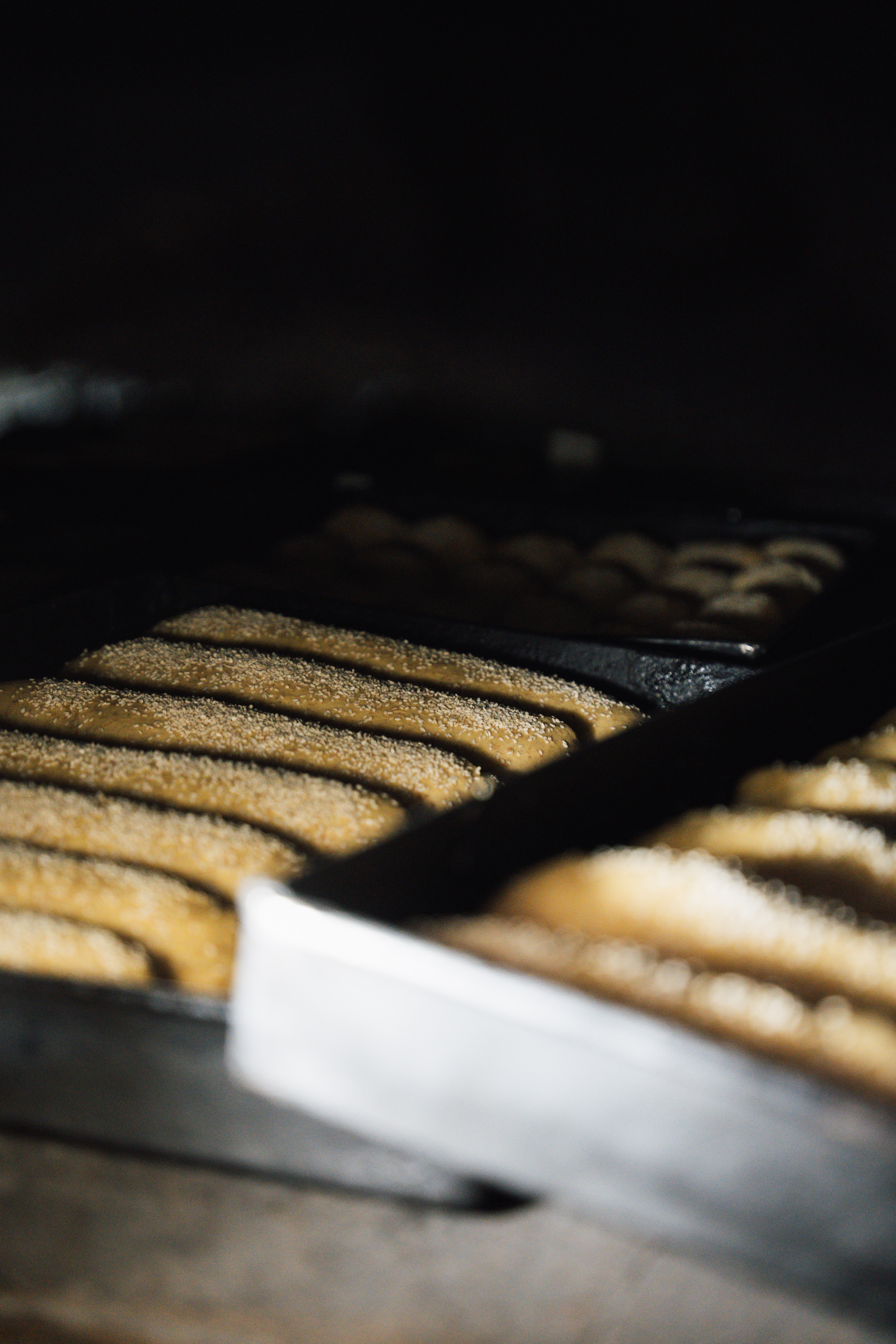 «Ο φούρνος αρχίζει και ζεσταίνεται. Όταν ασπρίσει εσωτερικά, τότε σημαίνει ότι είναι έτοιμος. Η θερμοκρασία του σε αυτή τη φάση είναι στους 400 βαθμούς. Όταν πέσει στους 200, τότε φουρνίζεις το ψωμί. Κατά τη διαδικασία του ψησίματος, θα χρειαστεί να γυρίσεις τις λαμαρίνες ώστε να ψηθεί ομοιόμορφα.