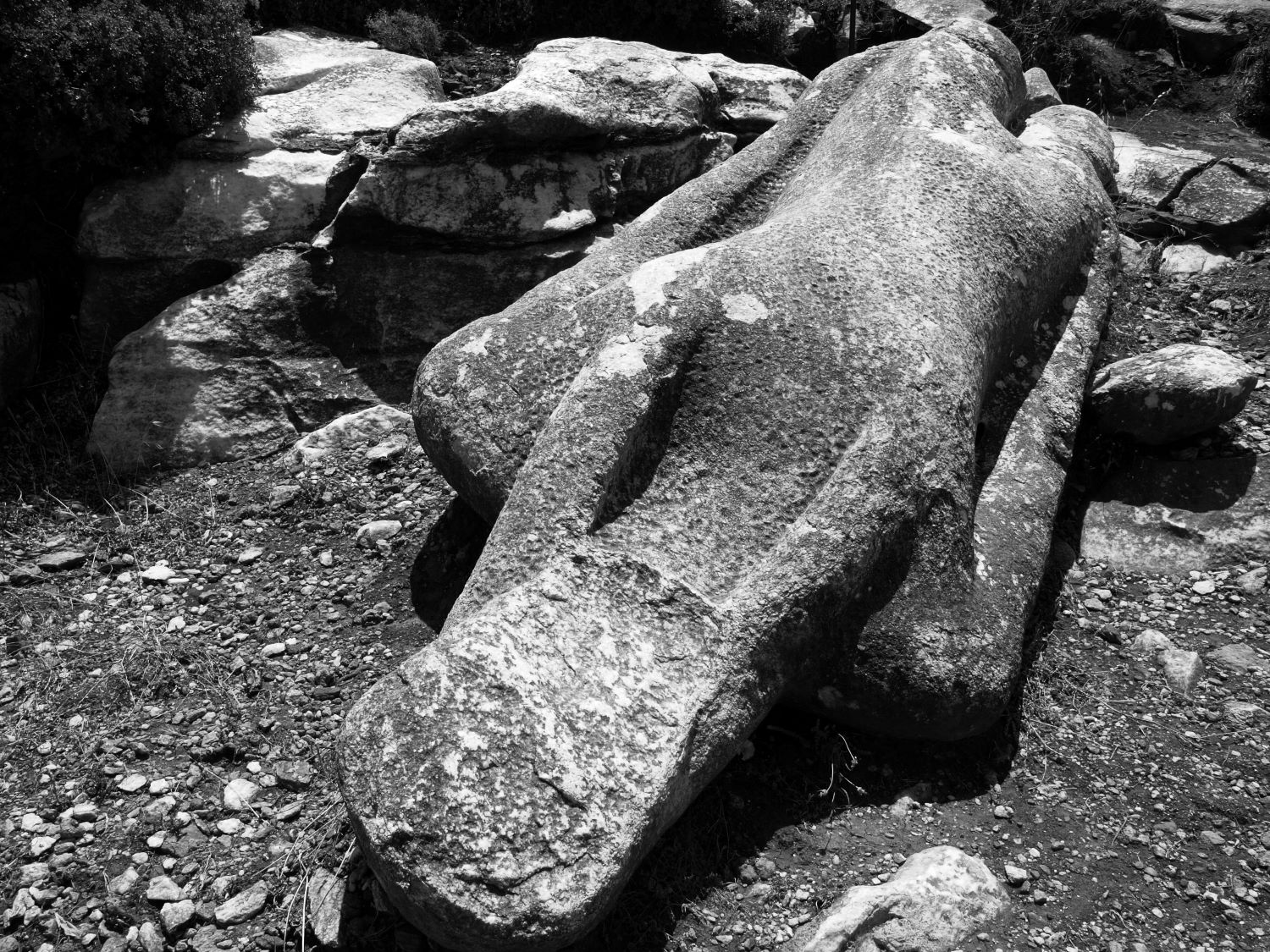 Εφοδιασμένοι με πατατοκεφτέδες μπαίνουμε στην πρώτη και καλύτερη διαδρομή μας για τον Κούρο του Απόλλωνα. Τείνει προς τη θάλασσα και διατρέχει την ακτογραμμή: Γαλήνη, Εγγαρές, αμπελοτόπια, Αμπράμ, πύργος Αγιάς, Απόλλωνας. Αριστερά του δρόμου ο παράκτιος οικισμός, δεξιά ο κούρος. Τα παιδιά τρελαίνονται να κάνουν τσουλήθρα επάνω στο γιγαντιαίο, πέτρινο, σώμα του γενειοφόρου άντρα, που φέρνει πολύ στο θεό του κεφιού, της γιορτής και του παιχνιδιού, Διόνυσο, ο οποίος παντρεύτηκε, εδώ στη Νάξο, την Αριάδνη και δέθηκε μαζί της. Δεν ξέρω αν η πρόθεση αυτών των αρχαϊκών λιθοξόων ήταν να αποσπάσουν από το βράχο, να το μεταφέρουν κάπου αλλού και να στήσουν όρθιο ένα άγαλμα ύψους δέκα και πλέον μέτρων, βάρους πολλών τόνων, που όμοιό του δεν υπάρχει πουθενά αλλού. Ο κούρος έχει μείνει εκεί, ξαπλωμένος, ενσωματωμένος στο αρχαίο λατομείο, πέτρα ριζιμιά, για να συντηρεί το μυστήριό του με ένα αδιόρατο χαμόγελο. Μισοτελειωμένος, για να μην πει ποτέ όλα τα μυστικά του και όλη την αλήθεια του. Και να αφήνει τη ζωή να κυλά χαρμόσυνα και αισθαντικά επάνω του, και, κατ’ επέκταση, επάνω στο σώμα της Νάξου, πάντα, ευχαριστημένη και χορτάτη.