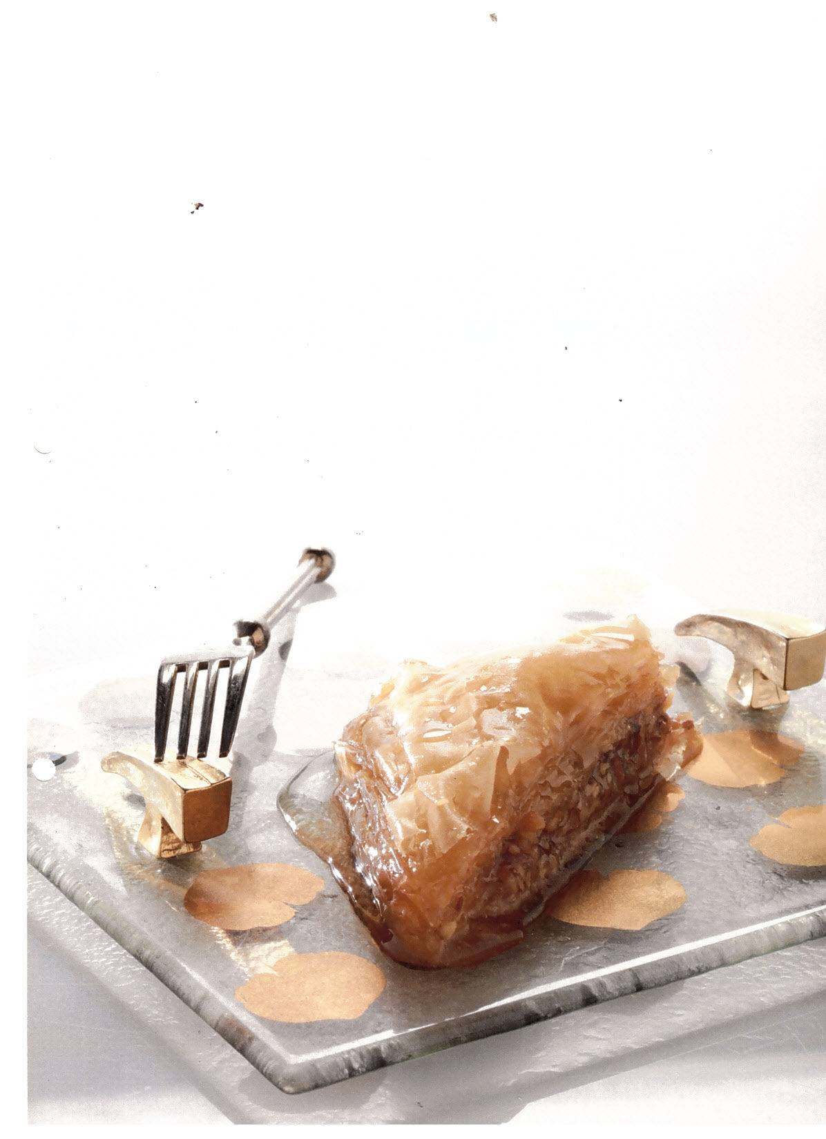 Βασιλιάς, φυσικά, ανάμεσά τους ο γιαννιώτικος μπακλαβάς, με τα χρυσαφένια φύλλα που γεμίζονται με καρύδι και αμύγδαλο ελληνικής προέλευσης, σε όποια μορφή τραβάει η όρεξή σας: από ταψάκι και μπαστούνι έως ατομικό κομμάτι και μπουκίτσες που απολαμβάνονται λαίμαργα πριν προλάβεις να τις μετρήσεις -με την πρώτη κιόλας να αποδεικνύει την ποιοτική ανωτερότητα. Εξαιρετικό αγελαδινό γαλλικό fermenté ή αιγοπρόβειο ηπειρώτικο βούτυρο, που ευωδιάζει και αφήνει απίθανη επίγευση χωρίς να σας βαραίνει, μετρημένη γλυκύτητα και απόλυτη φρεσκάδα. Όσο για την απόλυτα αμαρτωλή απόλαυση, δεν έχετε παρά να δοκιμάσετε τον γιαννιώτικο μπακλαβά με σαντιγί: το πάνω φύλλο αφαιρείται, μπαίνει η φρέσκια σαντιγί και το γλυκό ξανασκεπάζεται, σε ένα λεπτό παιχνίδι αέρινης και τραγανής υφής.