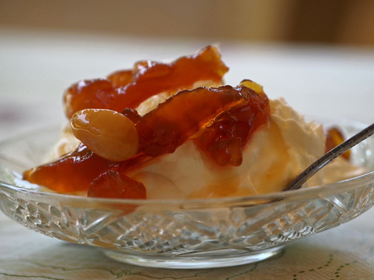 Και η πανδαισία του μηλέικου στρωμένου τραπεζιού ολοκληρώνεται, φυσικά, με το επιδόρπιο, που, παρά τη γλύκα του, συνεχίζει να κρατά έντονη τη γήινη γεύση του, αφού η βάση του είναι η κίτρινη ή η λευκή κολοκύθα. Στην πιο απλή μορφή της είναι κίτρινη κολοκύθα τηγανιτή πασπαλισμένη με ζάχαρη. Στην πιο σύνθετη λευκή κολοκύθα με μέλι και αμύγδαλα, το κουφέτο, το επίσημο τελετουργικό γλυκό κουταλιού εξαιρετικών στιγμών όπως ο γάμος, τα αρραβωνιάσματα ή η πρώτη γνωριμία με την παραδοσιακή γαστρονομία της Μήλου και του γλυκού τρόπου ζωής της, παράλληλα, ίσως, και με το καλωσόρισμα της καρπουζόπιτας.
