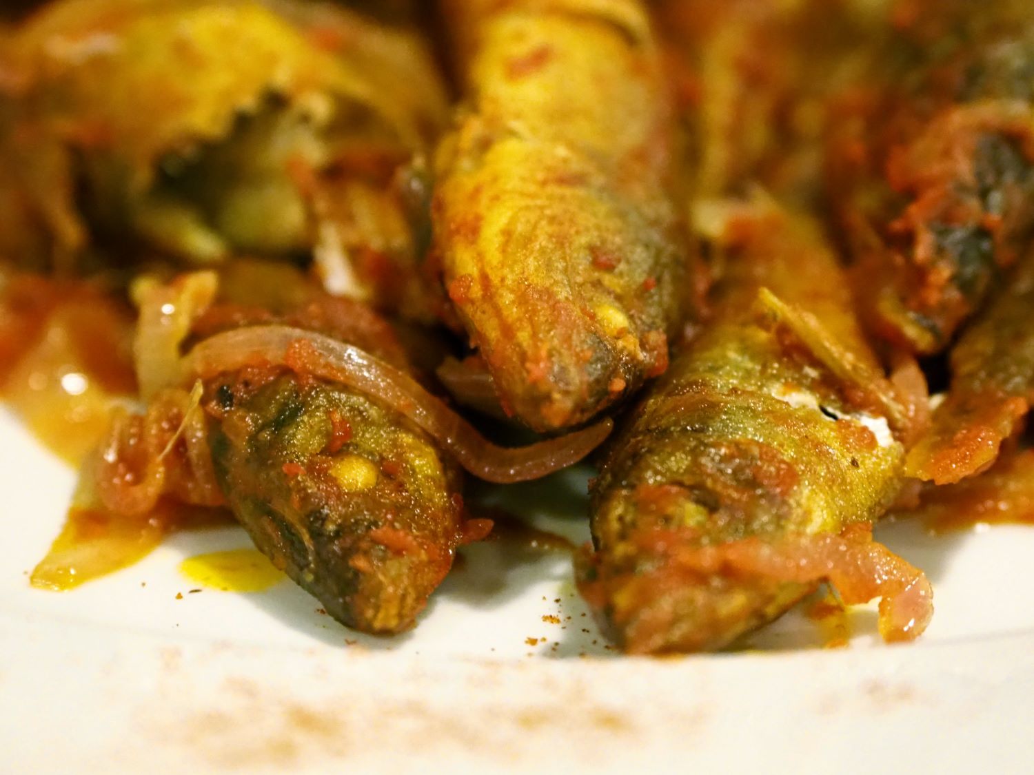 Λάδι, κρεμμύδι και ντοματοζούμι ήταν η βάση του «τσικαλιού» του παραδοσιακού σπιτιού. Η κυρία Ανθούσα θυμήθηκε τις τηγανισμένες μαρίδες με κρεμμύδι και μπελτέ, που έκανε ο πεθερός της μέχρι το τέλος της ζωής του. Και ω του θαύματος, το ίδιο βράδυ, ο Βασίλης είχε ετοιμάσει για εμάς στον «Αλευρόμυλο» αυτό το παραδοσιακό φαγητό. Μαρίδες με μπελτέ μηλέικο και κρεμμύδι. Καθαρίζει τα ψάρια, τα αλατίζει, τα αλευρώνει, τα τηγανίζει και τα βάζει να στραγγίξουν. Σε άλλο τηγάνι σοτάρει στο ελαιόλαδο το κρεμμύδι κομμένο φέτες και όσο κρατά ακόμα προσθέτει τον μπελτέ. Μετά βάζει και τα τηγανισμένα ψαράκια για ένα – δυο λεπτά, ίσα – ίσα για να τραβήξουν σάλτσα και να κρατήσουν επάνω τους το πρόσθετο κόκκινο πιπέρι.