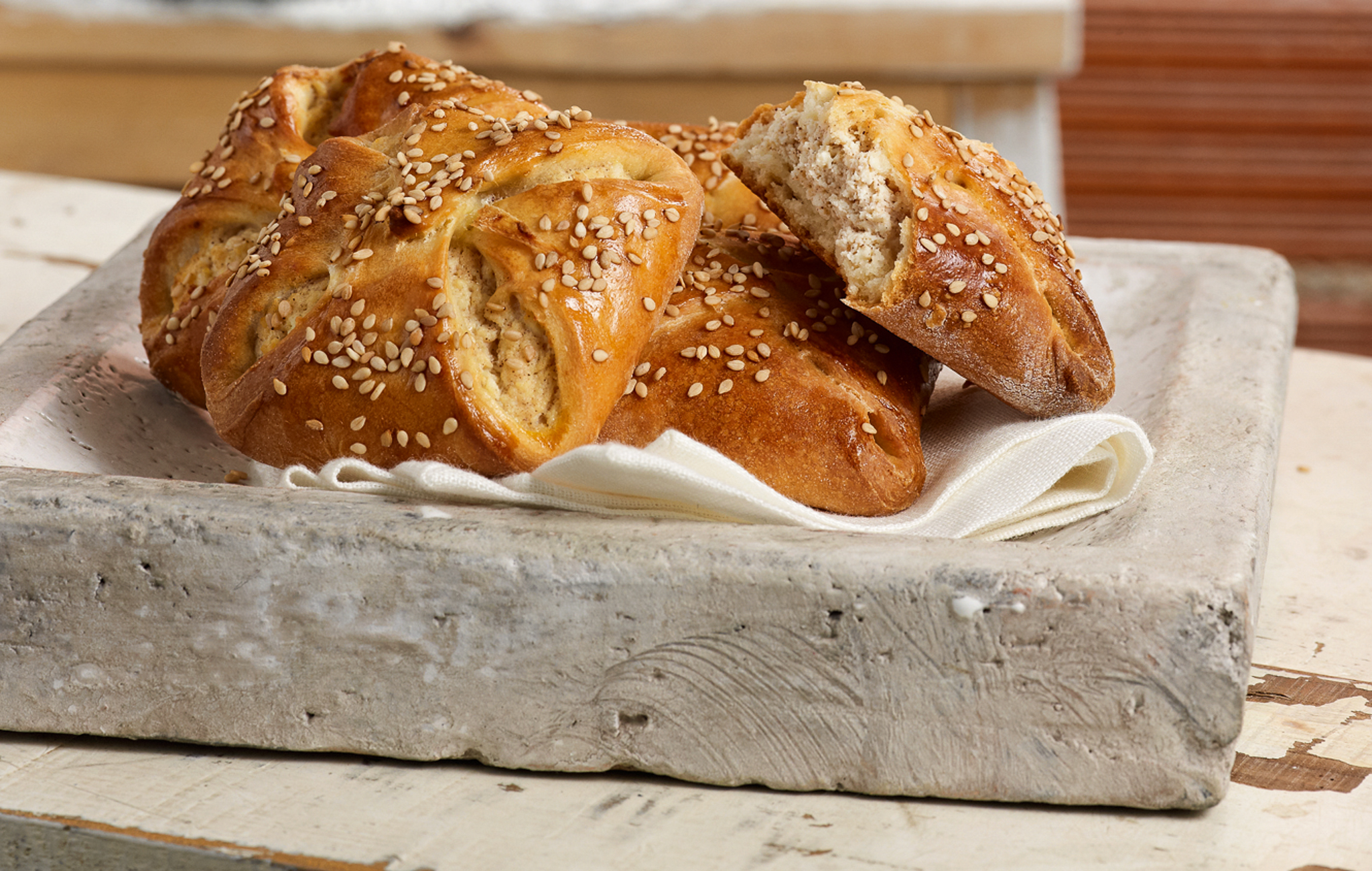 Το πιο αγαπημένο πασχαλινό γλυκάκι -κέρασμα, φτιάχνεται πια ολόκληρο το χρόνο. Το φύλλο του είναι κάπως παχουλό και φτιάνεται χωρίς μαγιά που χρειάζεται χρόνο για να ανέβει, να φουσκώσει. Φτιάχνεται σε διάφορα σχήματα με πιο γνωστό το «λυχναράκι» που η ζύμη τσιμπιέται γύρω γύρω σχηματίζοντας μυτούλες όπως τα μελιτίνια της Σαντορίνης ή σε τετράγωνο σχήμα Η γέμιση γίνεται με γλυκιά μυζήθρα και ζάχαρη και αρωματίζεται με κανέλα, μαστίχα, δυόσμο, ξύσμα λεμονιού, κτλ.