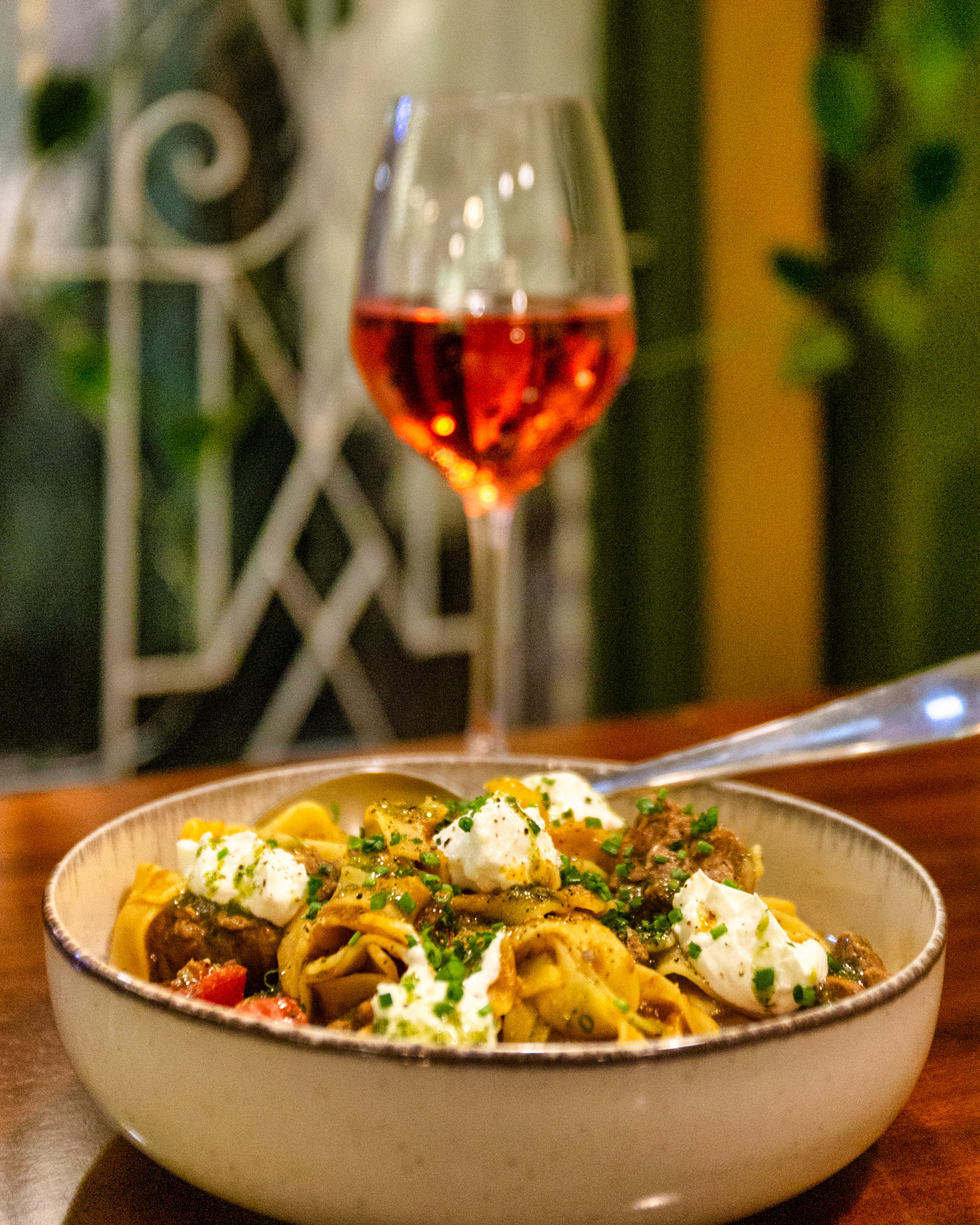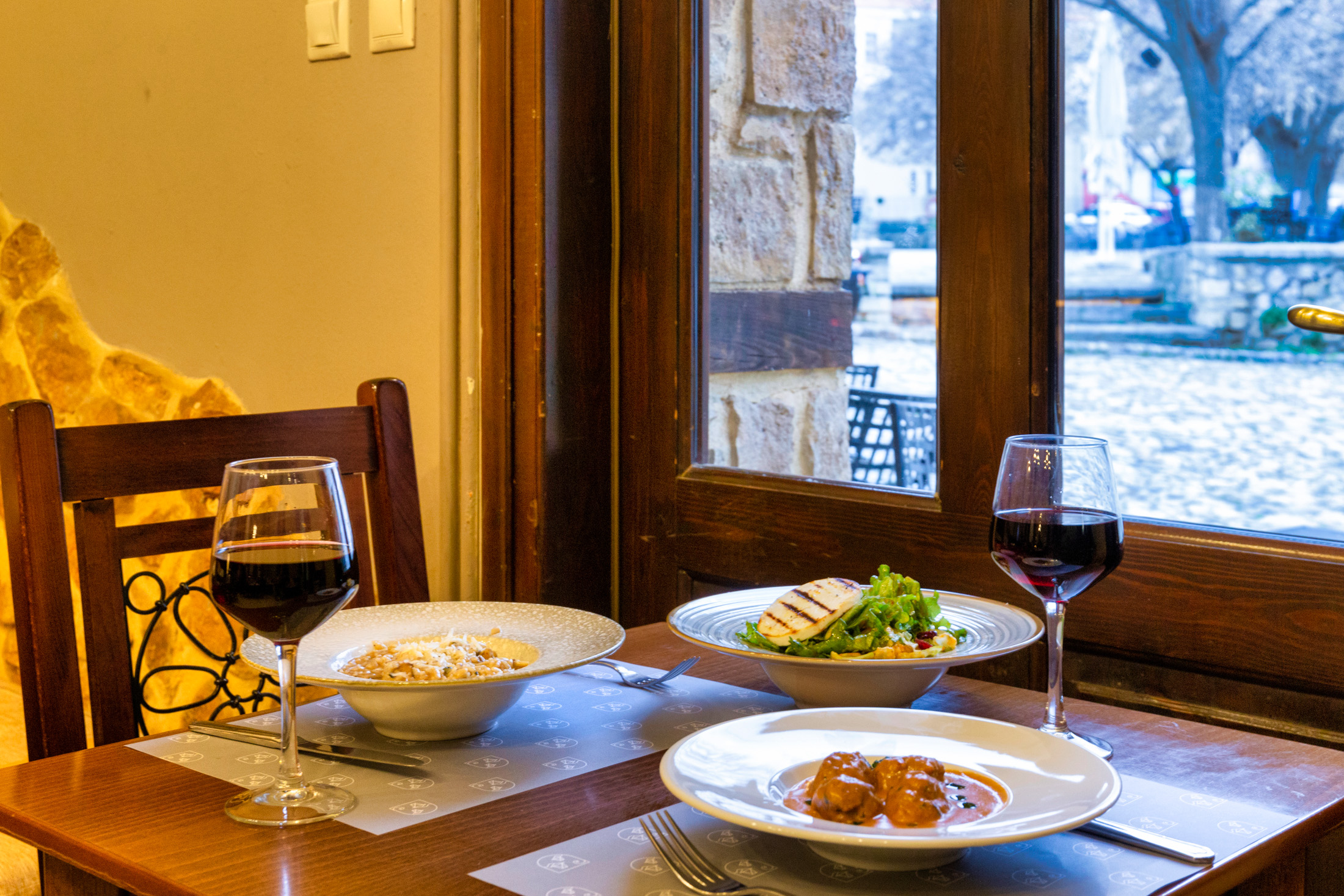 Άλλα πιάτα που ξεχωρίσαμε, με σύγχρονο τρόπος προετοιμασίας και τελικό σερβίρισμα: ριζότο με αποξηραμένα μανιτάρια, φασόλια γίγαντες, τυρί μπάτζο ή σαλάτα με μανούρι και ντόπια μοσχαρίσια μπριζόλα ωρίμασης. Πιάτα και ορεκτικά, όλα με αρμονικές γεύσεις, που μπορούν να συνδυαστούν με τα υπέροχα ντόπια κρασιά της πλούσιας κάβας. (Kαλντερίμι: Τηλ. 2467401195)