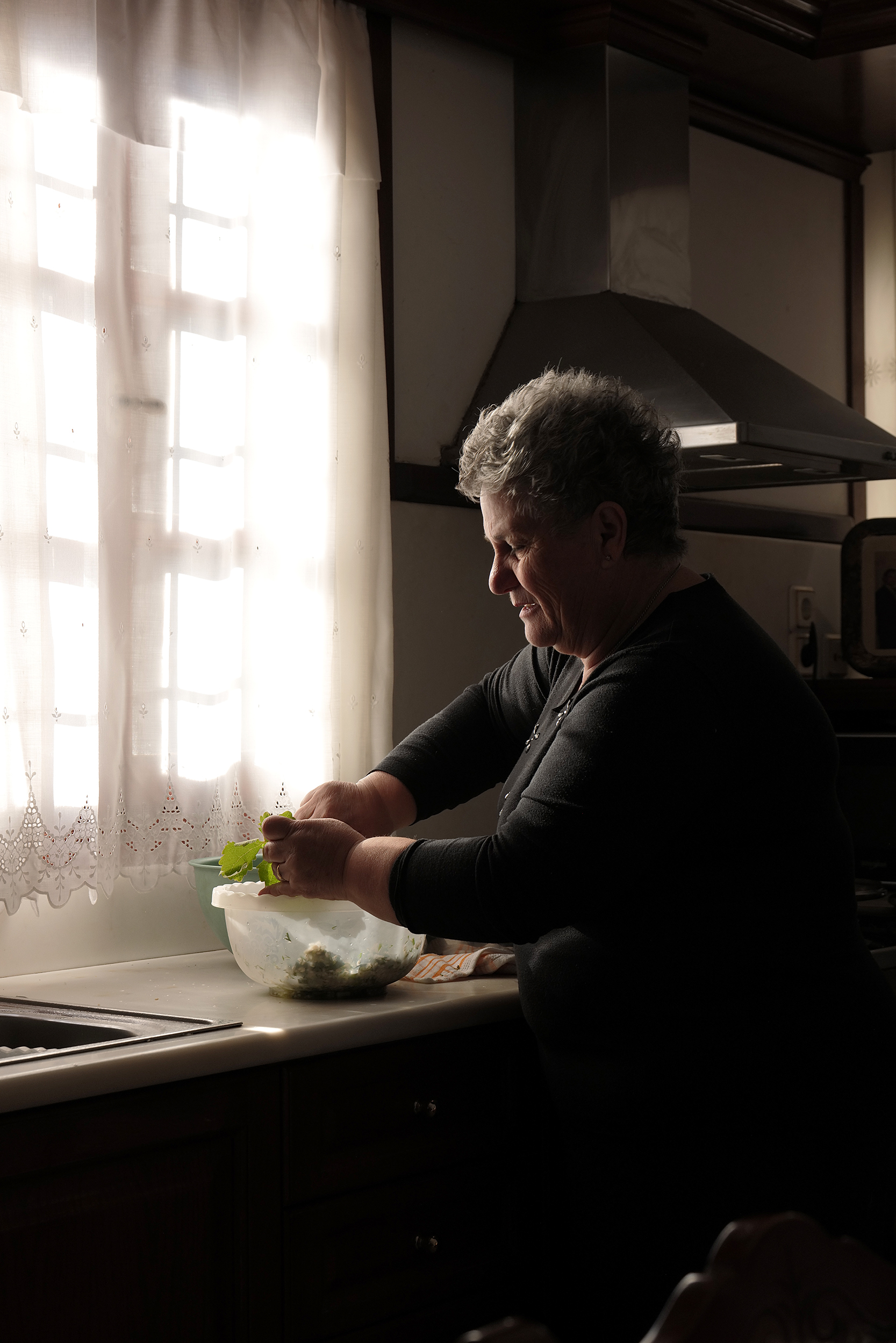 Στο μεταξύ, έχουμε ήδη μεταφερθεί στην κουζίνα, όπου ήδη η πρώτη κατσαρόλα με τα μαγειρεμένα γιαπράκια μοσχοβολά. Αναρωτιέται κανείς από τι ώρα έχει ξεκινήσει να μαγειρεύει, αλλά η κ. Μαρία είναι αεικίνητη. «Έχουμε συνεδρίαση του Δ.Σ. σήμερα, και θα τους φιλέψω κι εκείνους. Έτσι κάνω πάντα, είναι χαρά μου να προσφέρω και τιμή μου να απολαμβάνουν αυτά που φτιάχνω». Με το τραπέζι του πρωινού στρωμένο στην εντέλεια, με ζεστό καφέ και τσάι του βουνού, χειροποίητα σαντορινιά μελιτίνια, σπιτικό αφράτο κέικ με ταχίνι και σταφίδες και ζυμωμένα από την ίδια παξιμάδια με σαφράν και κεφαλοτύρι, δε χωρά αμφιβολία πως η κα Μαρία είναι η προσωποποίηση της φιλοξενίας της Σαντορίνης. Κι όσο εμείς απολαμβάνουμε το λουκούλλειο πρωινό ενώ ο Νικόλας μας περιεργάζεται, εκείνη μας μιλά για τη δική της αγαπημένη Σαντορίνη και τη «χρυσή εποχή» της τέσσερις δεκαετίες πριν, όταν σταθερά ανέρχονταν ως κορυφαίος διεθνής προορισμός.
