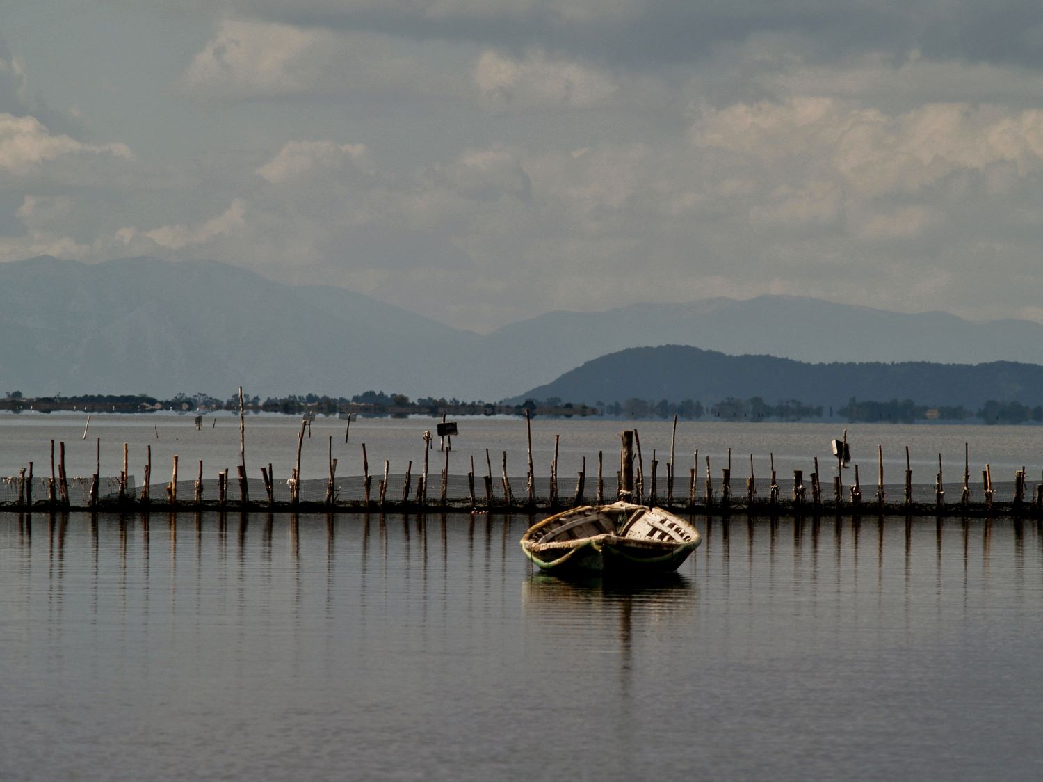 Ξυπνά τον θαυμασμό η συγκίνηση που μπορεί να αποπνέει ένα τόσο ήρεμο τοπίο. Είναι η απεραντοσύνη που απλώνεται για να γίνει ο καμβάς επάνω στον οποίο σχεδιάζεται η ζωγραφιά με την υγρασία και τα διάφανα χρώματα της ακουαρέλας. Ίσως γιατί δεν μπορείς να είσαι σίγουρος που αρχίζουν τα νερά και που τελειώνει η στεριά. Γι’ αυτό και οι οικισμοί, όπως η Τουρλίδα, έχουν τις αυλές τους μέσα στα νερά κι οι αντανακλάσεις τους είναι η βασική πολυχρωμία της λιμνοθάλασσας, μαζί με τις βάρκες και το μεγαλόπρεπο ηλιοβασίλεμα∙ και τα πουλιά, με πιο χαρακτηριστική την Αλκυόνη, που μετά από κάθε βουτιά στεγνώνει το ουράνιο τόξο του φτερώματός της γαντζωμένη σε έναν πάσσαλο που, αν και εντυπωσιακά μόνος, έμεινε όρθιος. Αυτοί οι φράχτες των ιβαριών είναι το βασικό σχέδιο – λες με κάρβουνο ή μολύβι – , ο σκελετός του τοπίου της λιμνοθάλασσας, αλλά και τρόπος ψαρέματος. Τα ιβάρια ανοίγουν και κλείνουν αναλόγως των εποχών και τα ψάρια εκμεταλλεύονται οι ψαράδες και τα υδρόβια πουλιά, ενσωματωμένοι όλοι στο τοπίο.