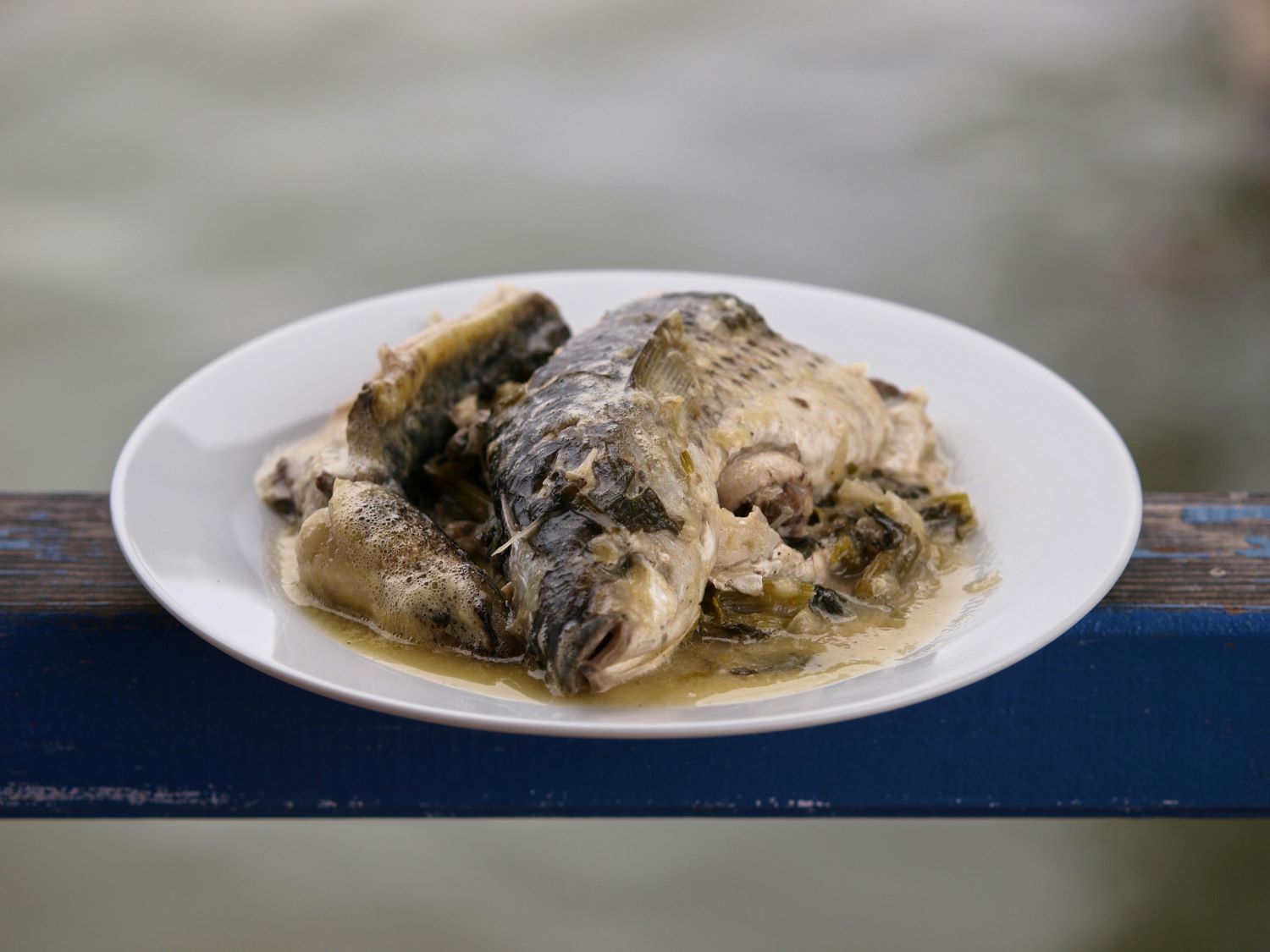 Πως μπορείς να περιγράψεις τη γεύση του τοπίου της λιμνοθάλασσας; Θα ερχόσουν εγγύτερα της πραγματικότητας αν το παρομοίαζες με μια σούπα που τη συνθέτουν διάφορες θαλασσινές νότες ψαριών – όπως λαυκίνοι, τσιπούρες, χέλια – και χοντρού αλατιού, περιτριγυρισμένες από γεννήματα της στεριάς, όπως το αυγό, το σέλινο, το λεμόνι, το κρεμμύδι, το καρότο. Αυτή, δηλαδή, που κοχλάζει ήδη στην μικρή κουζίνα, στο πλάι της πελάδας, που ο Σάκης σηκώνεται κάθε τόσο να την ελέγξει. Παραδοσιακά, για τα ψάρια φρικασέ χρησιμοποιούσαν μόνο τσιπούρες. Αυτή είναι η εμπλουτισμένη παραλλαγή του Σάκη.