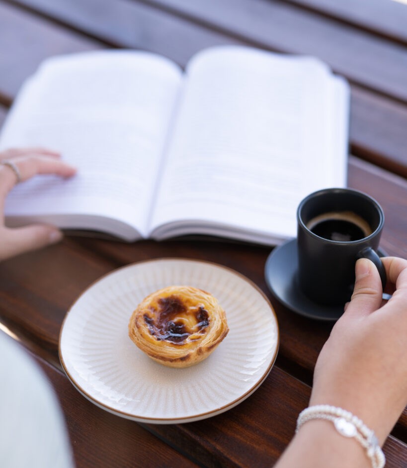 Στο μικρό μαγαζί Manteigaria (R. de Loreto 2), στη γειτονιά του Chiado, χάζεψα από την τζαμαρία τη διαδικασία παραγωγής και γεύτηκα ένα pastel που το φύλλο του έμοιαζε περισσότερο με μπισκότο και η κρέμα του είχε περισσότερη γεύση βανίλιας. Στο ατμοσφαιρικό ζαχαροπλαστείο Castro (R. Garrett 38), η μυρωδιά των φρεσκοψημένων pasteis με τράβηξε από τη μύτη. Κάθισα σε ένα από τα μικρά τραπέζια του και, παρέα με ένα ποτήρι Porto -ένας τρόπος για να συνοδεύσει κανείς τα στρογγυλά γλυκίσματα- έμεινα να χαζεύω τον κόσμο που έμπαινε και έβγαινε, κρατώντας ένα χάρτινο κουτί γεμάτο pasteis. Πολύ λεπτό, τραγανό και απαλό φύλλο, με γεύση βουτύρου και κρόκου η κρέμα. Ένας «επικίνδυνα» εθιστικός συνδυασμός.