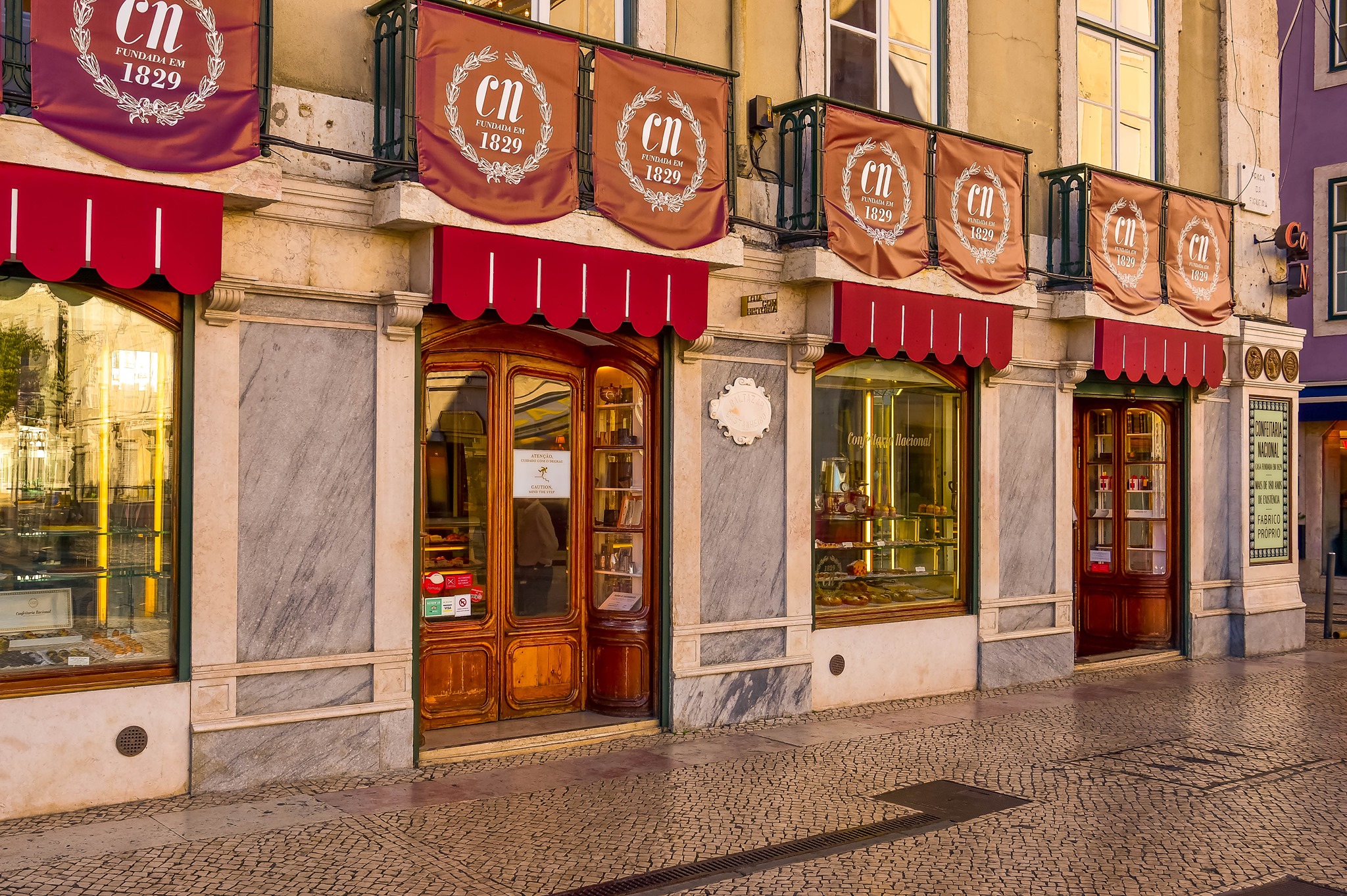 Στην ίδια περιοχή, στο Chiado, επισκέφτηκα το ιστορικό ζαχαροπλαστείο Benard (R. Garrett 104), που λειτουργεί από το 1868. Με προέτρεψαν να τα συνοδεύσω με ζεστή σοκολάτα, όμως τα πήρα στο χέρι για να φωτογραφηθώ μαζί τους στην πλατεία Comércio, κάτω από την αψίδα, σαν γνήσιος τουρίστας.