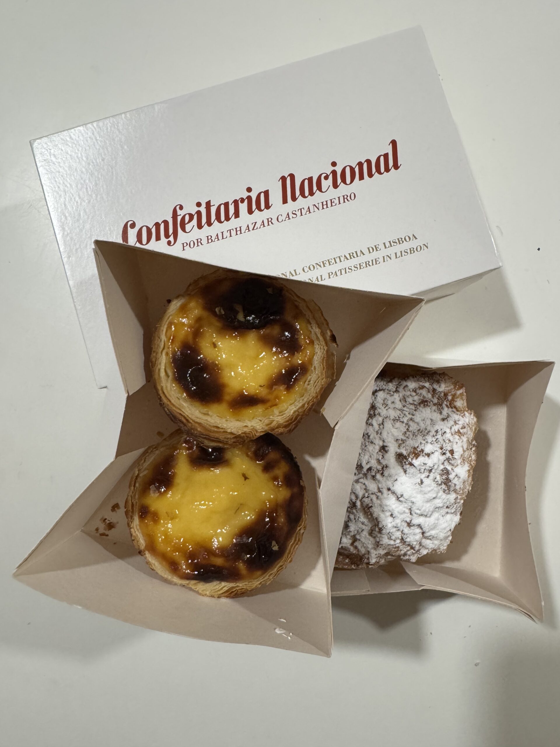 Όσο καιρό βρέθηκα στην πορτογαλική πρωτεύουσα, με την πλούσια γαστρονομική παράδοση, δεν άφησα να περάσει ούτε μια μέρα χωρίς να γευτώ κάποιο από αυτά τα ταρτάκια. Έμεινα να περιμένω υπομονετικά στην ουρά του πιο γνωστού ζαχαροπλαστείου, της Confeitaria Nacional (Praça da Figueira 18B), πάνω στην κεντρική πλατεία Figueira, για ένα pastel. Στάθηκα κάτω από τη βροχή, απολαμβάνοντας τον ήχο που έκανε το τραγανό φύλλο σε κάθε μπουκιά και την απαλή, ελαφρώς γλυκιά κρέμα.
