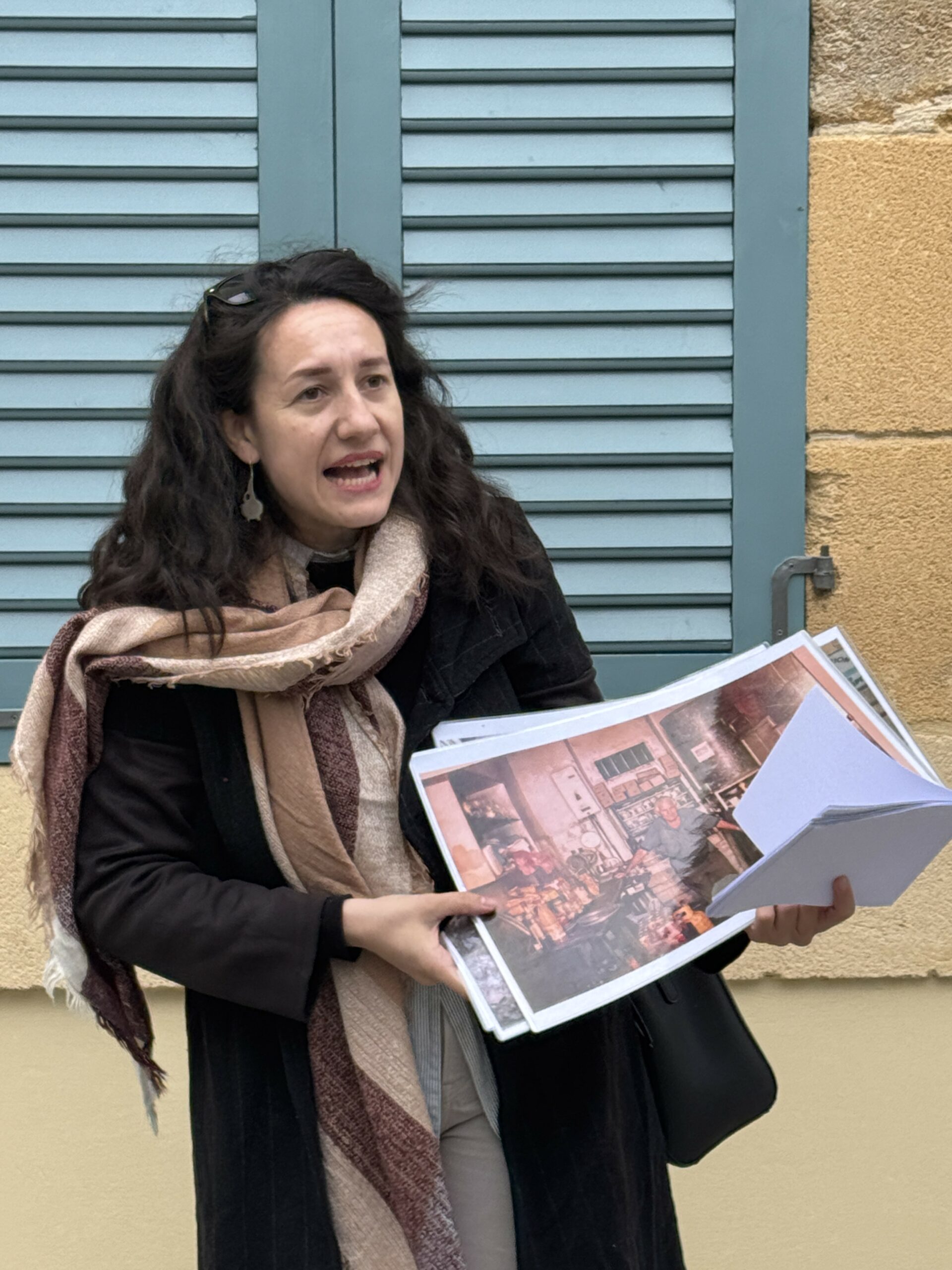 Σε αυτό το πλαίσιο, η αφετηρία μας δεν θα μπορούσε να είναι πιο συμβολική. Στεκόμαστε στο σημείο όπου κάποτε το θρυλικό «Καφενείο Χατζησάββα» αποτελούσε σημείο αναφοράς της κοινωνικής ζωής της πόλης. Η Ιλιάνα, με τη ζεστή φωνή της, μας ταξιδεύει στα τέλη του 19ου αιώνα, όταν ο Κυπρής Χατζησάββας έστηνε το καφενείο του, που έμελλε να γίνει τόπος συνάντησης για ανθρώπους κάθε κοινωνικής τάξης. Απέναντι στεκόταν το Μαγικό Παλάτι, ένα από τα μεγαλύτερα σινεμά της Λευκωσίας, συνθέτοντας ένα σκηνικό ζωντανής πολιτιστικής δραστηριότητας.
