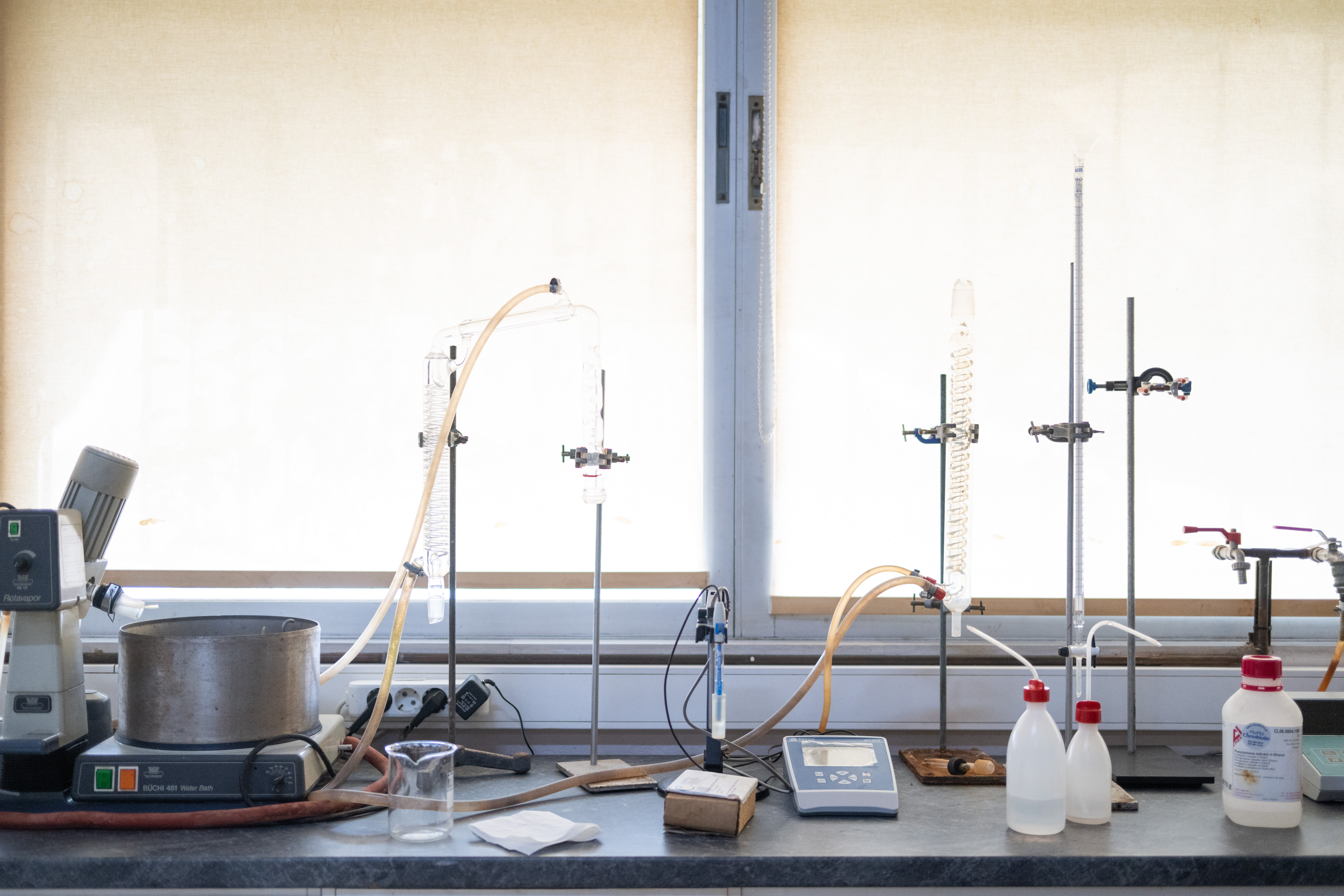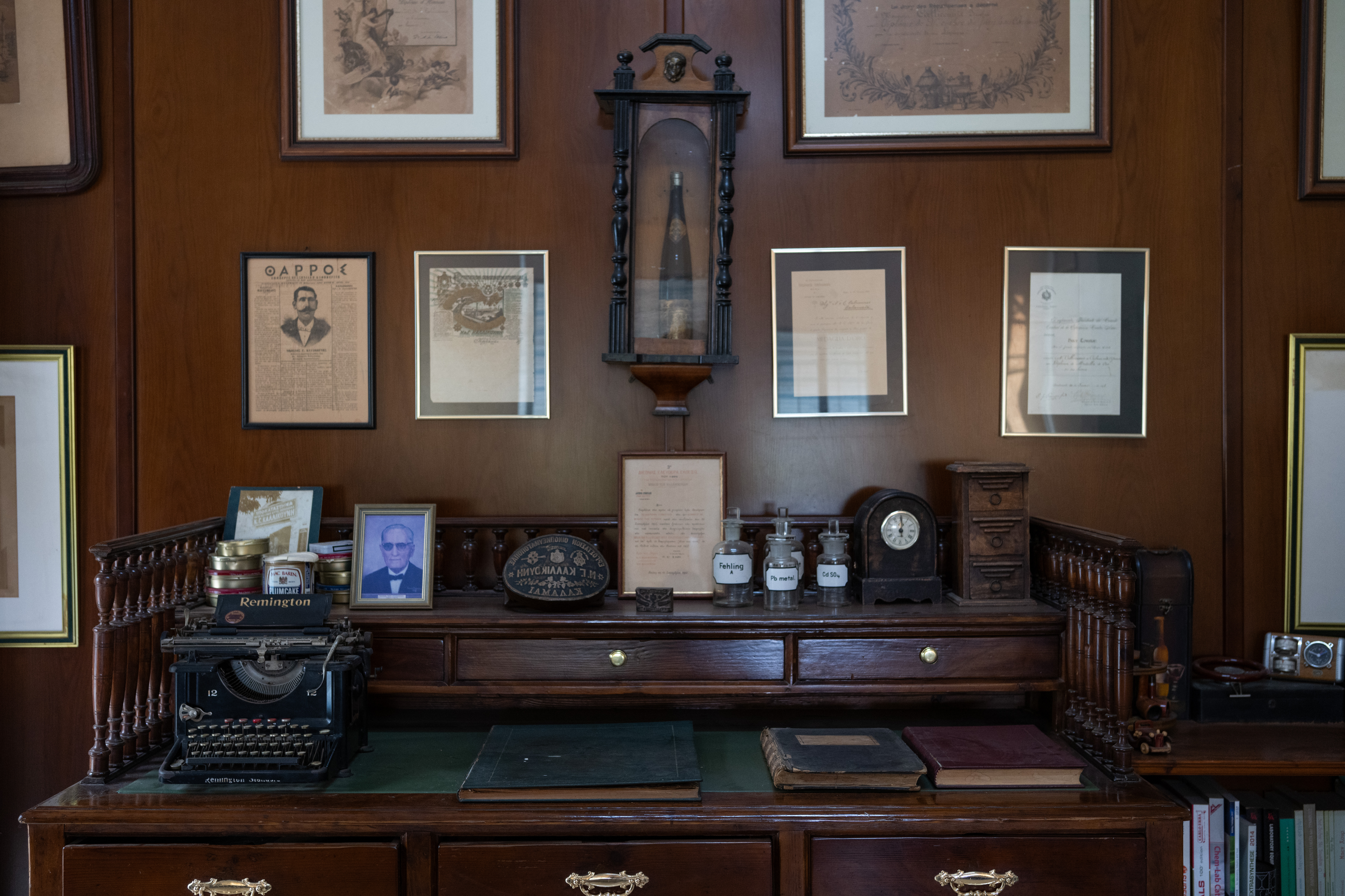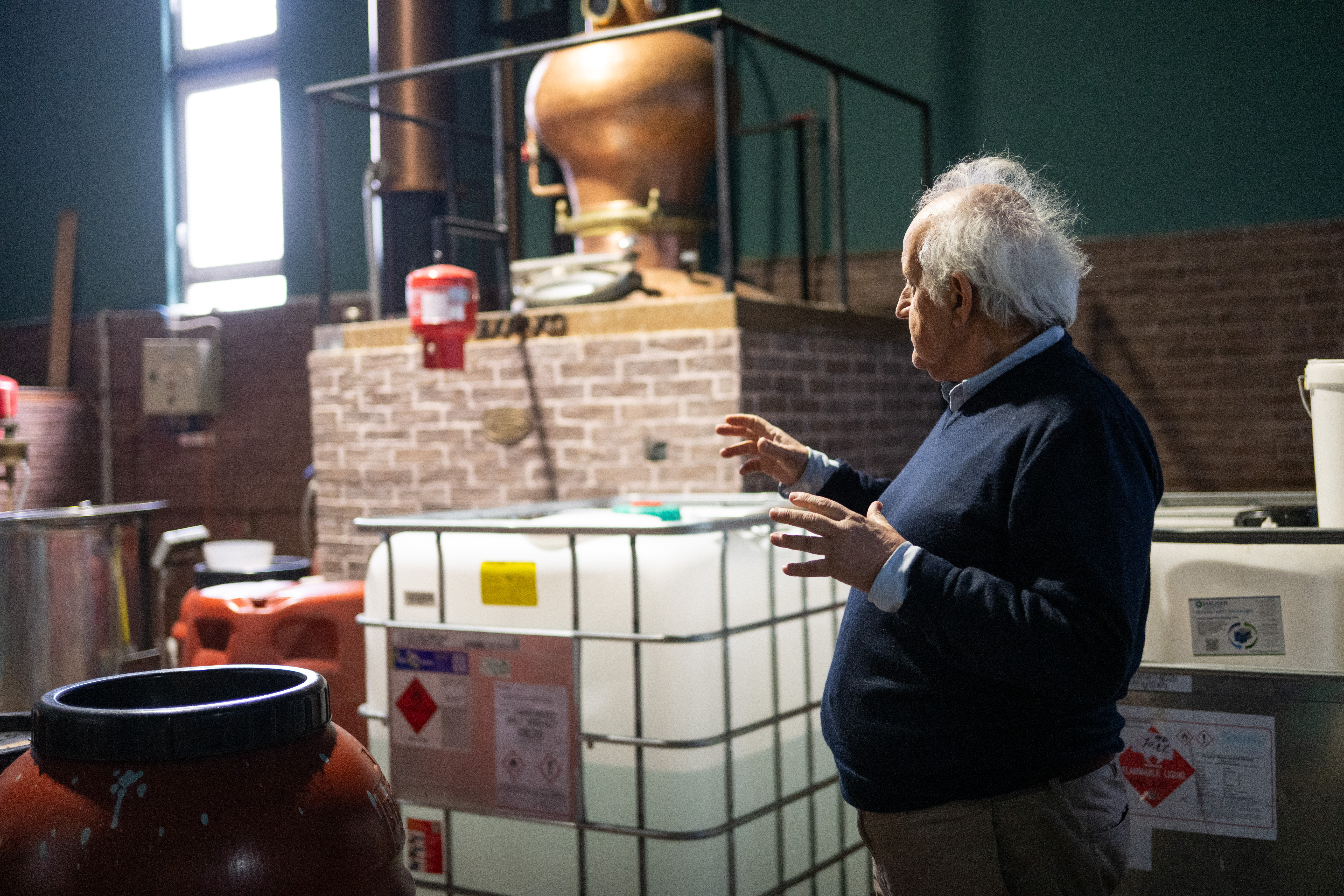 Το αποστακτήριο μοιάζει με ζωντανό μουσείο όπου το παρελθόν και το παρόν συνυπάρχουν σε τέλεια αρμονία. Στο χημείο, μικρά μπουκαλάκια με αποστάγματα και δοκιμαστικοί σωλήνες γεμίζουν τα ράφια -κάποιες συνθέσεις χρονολογούνται από δεκαετίες πριν, άλλες αναπτύσσονται για νέα προϊόντα. Αυτά είναι τα δομικά στοιχεία των χαρακτηριστικών γεύσεων τους. «Η χημεία ήταν πάντα θεμελιώδης για την επιχείρησή μας», εξηγεί ο κ. Καλλικούνης, καθώς εξετάζουμε το εργαστήριο. «Ο πρόγονός μου σπούδασε χημεία στην Τεργέστη πριν ιδρύσει αυτή την επιχείρηση. Έκτοτε κάθε γενιά διατήρησε αυτή την επιστημονική προσέγγιση τιμώντας παράλληλα τις παραδοσιακές μεθόδους». Σε όλη την εγκατάσταση, γυάλινες προθήκες παρουσιάζουν προϊόντα από την εποχή ίδρυσης της εταιρείας -πρωτότυπα μπουκάλια, ετικέτες και εξοπλισμό που έχουν διατηρηθεί προσεκτικά. Κορνιζαρισμένα βραβεία κρέμονται στους τοίχους, αφηγούμενα την ιστορία της διεθνούς αναγνώρισης που χρονολογείται από τον 19ο αιώνα.
