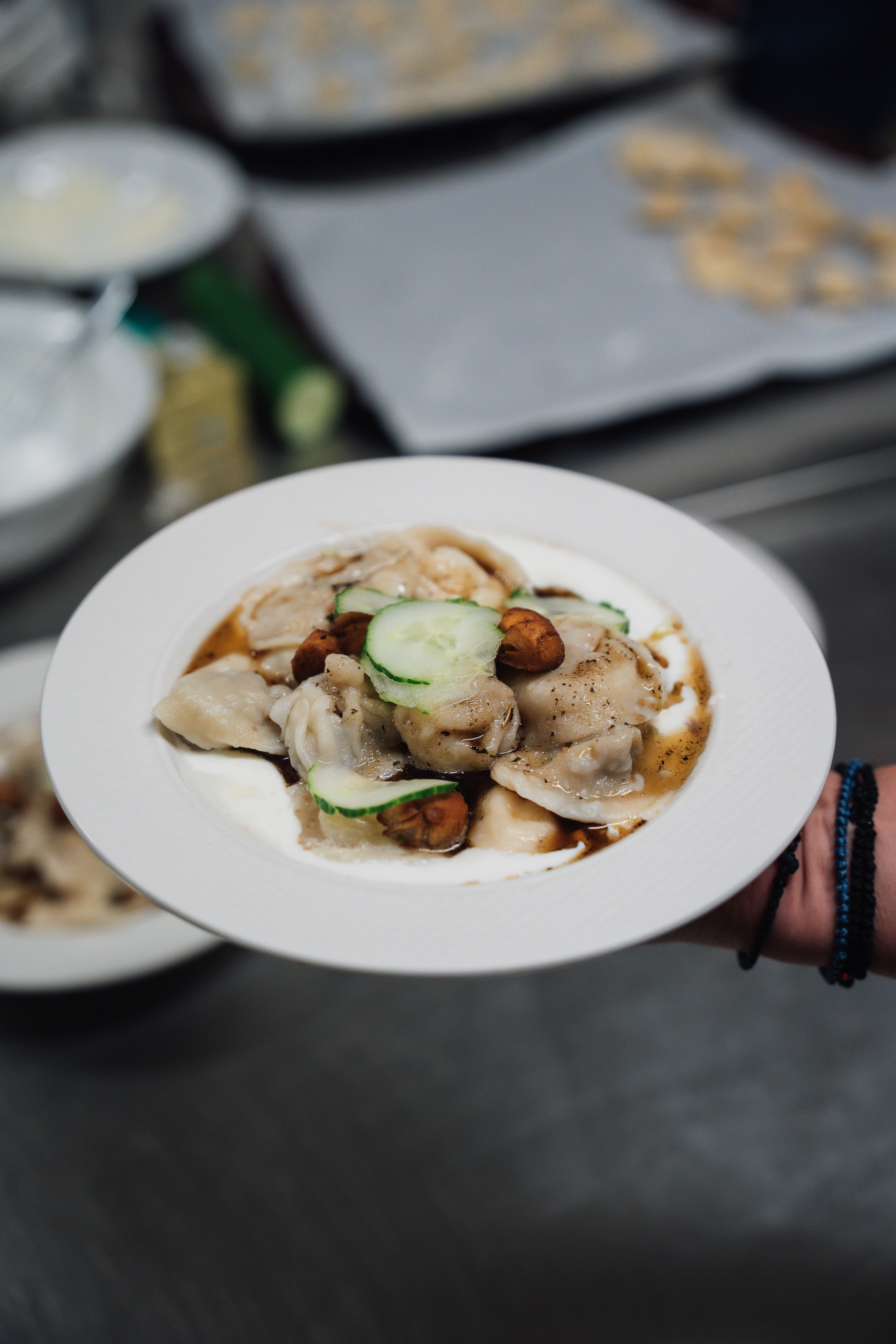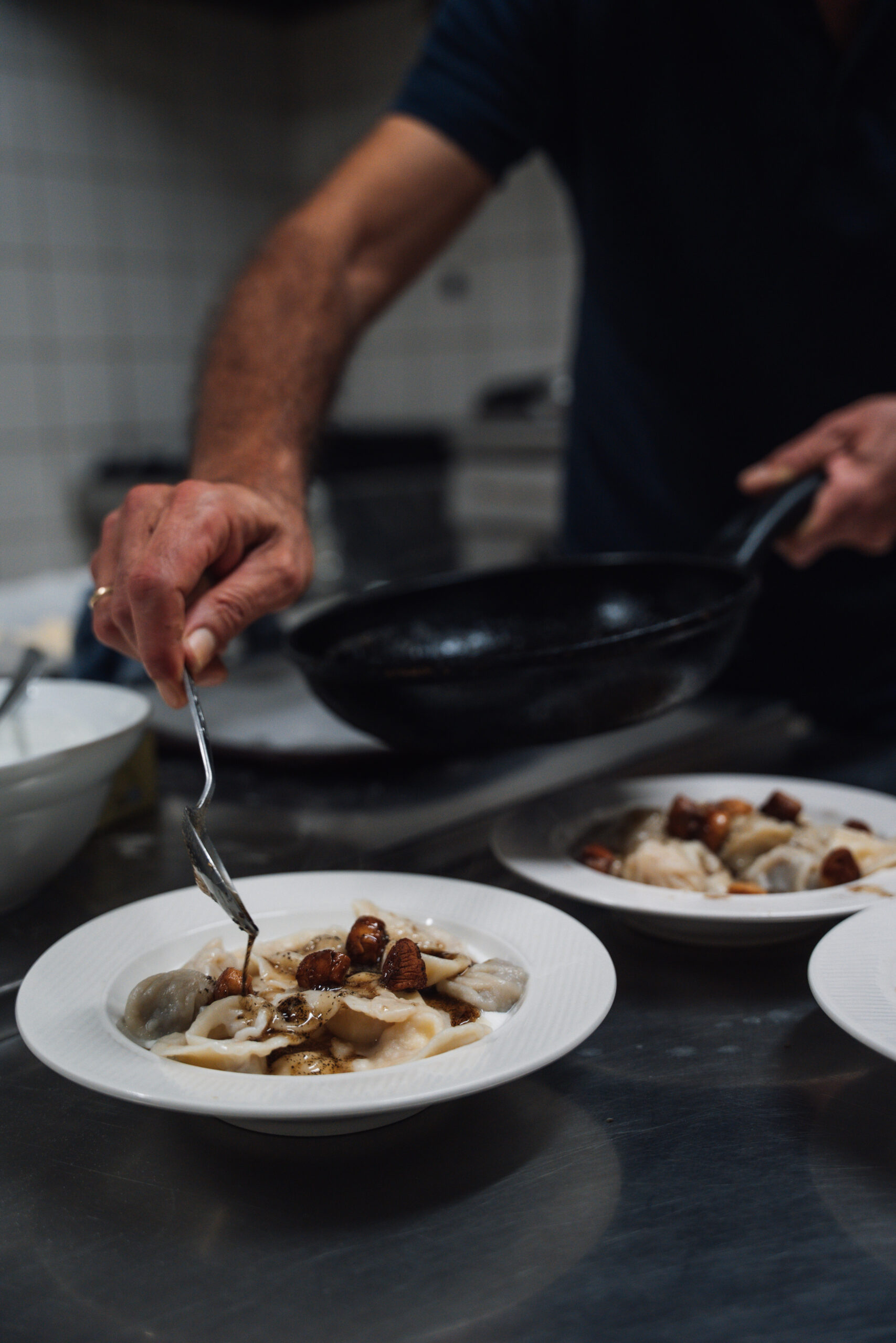 Στην ίδια κουζίνα του ξενοδοχείου Νέσσος, η Γεωργία παίρνει τη σκυτάλη της παράδοσης στα χέρια της. Με τις κινήσεις της να μαρτυρούν την εξοικείωση χρόνων με τη συνταγή, ξεκινά την προετοιμασία του μαντί, ενός εμβληματικού ζυμαρικού της Καππαδοκίας που έχει διασχίσει σύνορα και εποχές. «Στη Χάγη, το μαντί έχει γίνει η γευστική μου υπογραφή» μάς εξομολογείται, καθώς τα δάχτυλά της ζυμώνουν με μαεστρία το μείγμα από αλεύρι, αλάτι, λάδι και νερό.
