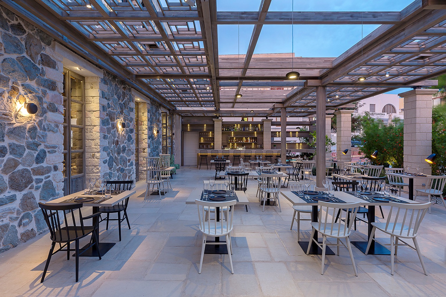 Fine dining εντυπωσιακό εστιατόριο στη δεξιά πλευρά του λιμανιού. Ο chef Γκίκας Ξενάκης αξιοποιεί τον πλούτο των αξιώτικων προϊόντων σε ένα δημιουργικό μενού με σύγχρονες τεχνικές. Χαρακτηριστικά πιάτα, το κατσίκι Νάξου στον ξυλόφουρνο με βερίκοκα, κρέμα από φασόλια Λήμνου και σάλτσα με μαστίχα και το ταρτάρ από ναξιώτικο μοσχάρι με κρέμα κίτρινου κολοκυθιού.