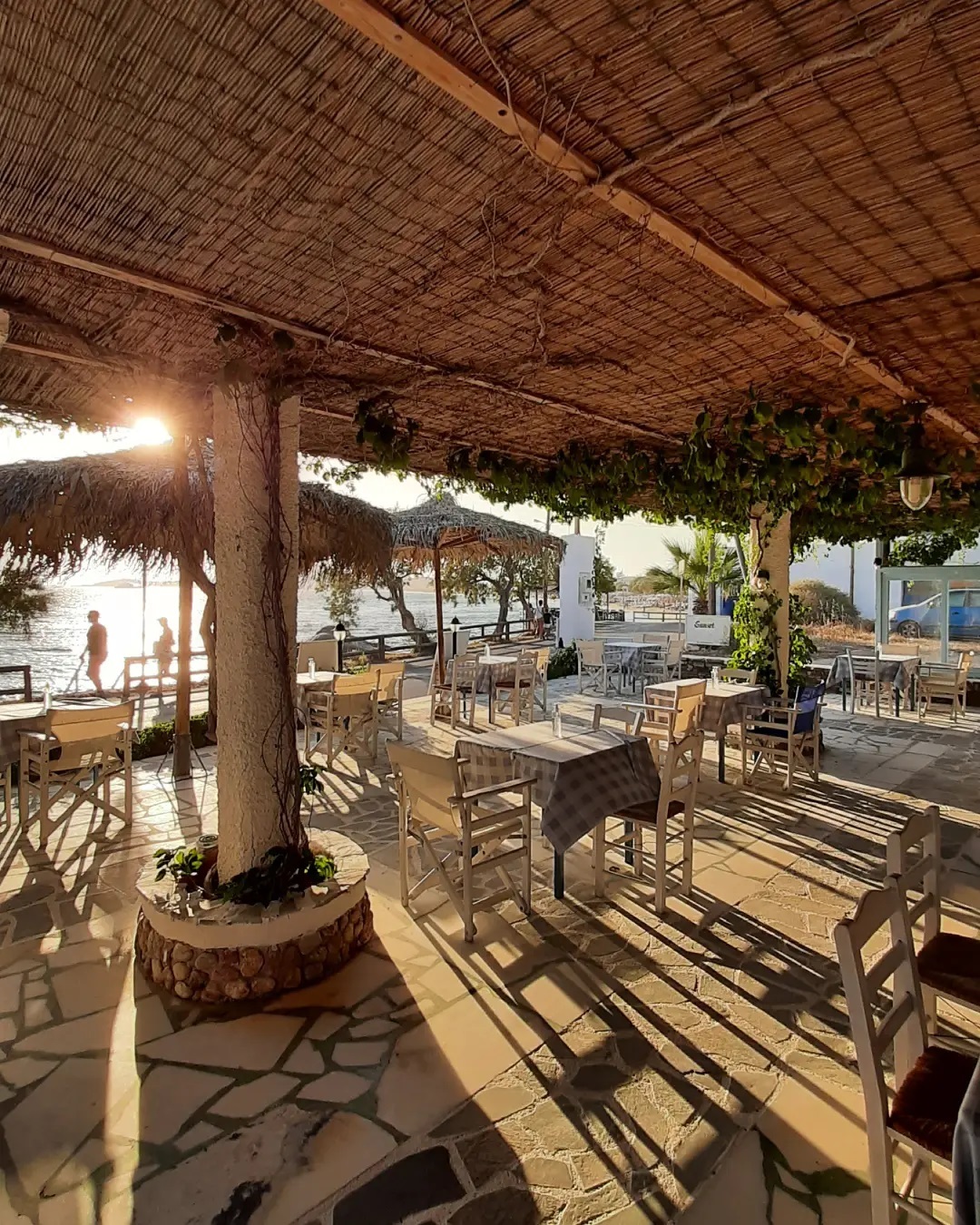 Εστιατόριο με τραπέζια σε σκιερή αυλή και ξαπλώστρες στην παραλία της Πλάκας. Ο σεφ Κωνσταντίνος Χουζούρης παρουσιάζει μια δημιουργική εκδοχή της παραδοσιακής κουζίνας της Νάξου και των Κυκλάδων, που βασίζεται αποκλειστικά στα τοπικά προϊόντα. Χαρακτηριστικά πιάτα είναι το σιτεμένο αγριοκάτσικο στον ξυλόφουρνο, χταποδομακαρονάδα και βιολογικός μαύρος χοίρος στη γάστρα.