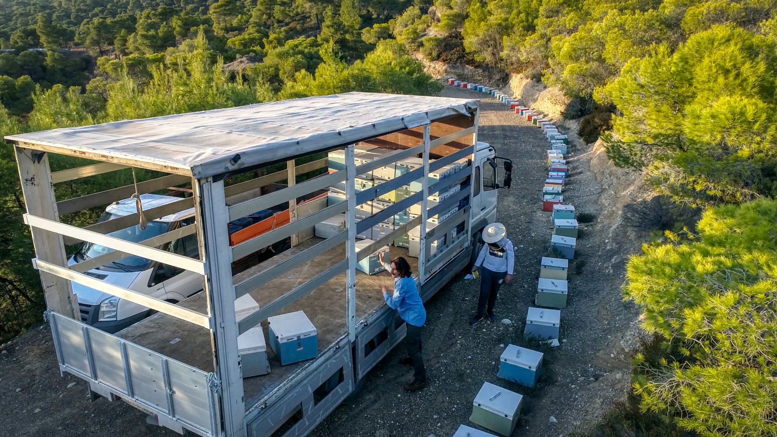 Από τις αρχές της άνοιξης και ως το τέλος του φθινοπώρου υπάρχει αυτή η «νομαδική μετακίνηση που προαναφέραμε». Τα μελίσσια φορτώνονται σε φορτηγά και μεταφέρονται στα δάση και τους θαμνότοπους της Ελλάδας, όπου θα γίνει η παραγωγή και η συγκομιδή του μελιού. Τα μέρη επιλέγονται ανάλογα την καταλληλότερη βλάστηση και κλίμα για το κάθε είδος μελιού. Από το Γαλαξίδι όπου παράγεται μέλι από θυμάρι, στην Ευρυτανία όπου παράγεται μέλι από βελανιδιά, έως τη Θάσο για μέλι από πεύκο, τη Χαλκιδική όπου παράγεται μέλι καστανιάς και ερείκης, την Μήλο την Κίμωλο όπου εδώ και έναν περίπου χρόνο η οικογένεια έχει και μία μόνιμη εγκατάσταση για να παράγει θυμαρίσιο μέλι. Φυσικά μια τέτοια διαδικασία απαιτεί οργάνωση και logistics για να γίνει σωστά. «Είναι μία επίπονη δουλειά, αρκετά δύσκολη, πρέπει όλα να γίνουν εντός χρονοδιαγραμμάτων. Αλλά ευτυχώς για την ώρα όλα αυτά τα χρόνια τα έχουμε καταφέρει χωρίς προβλήματα».