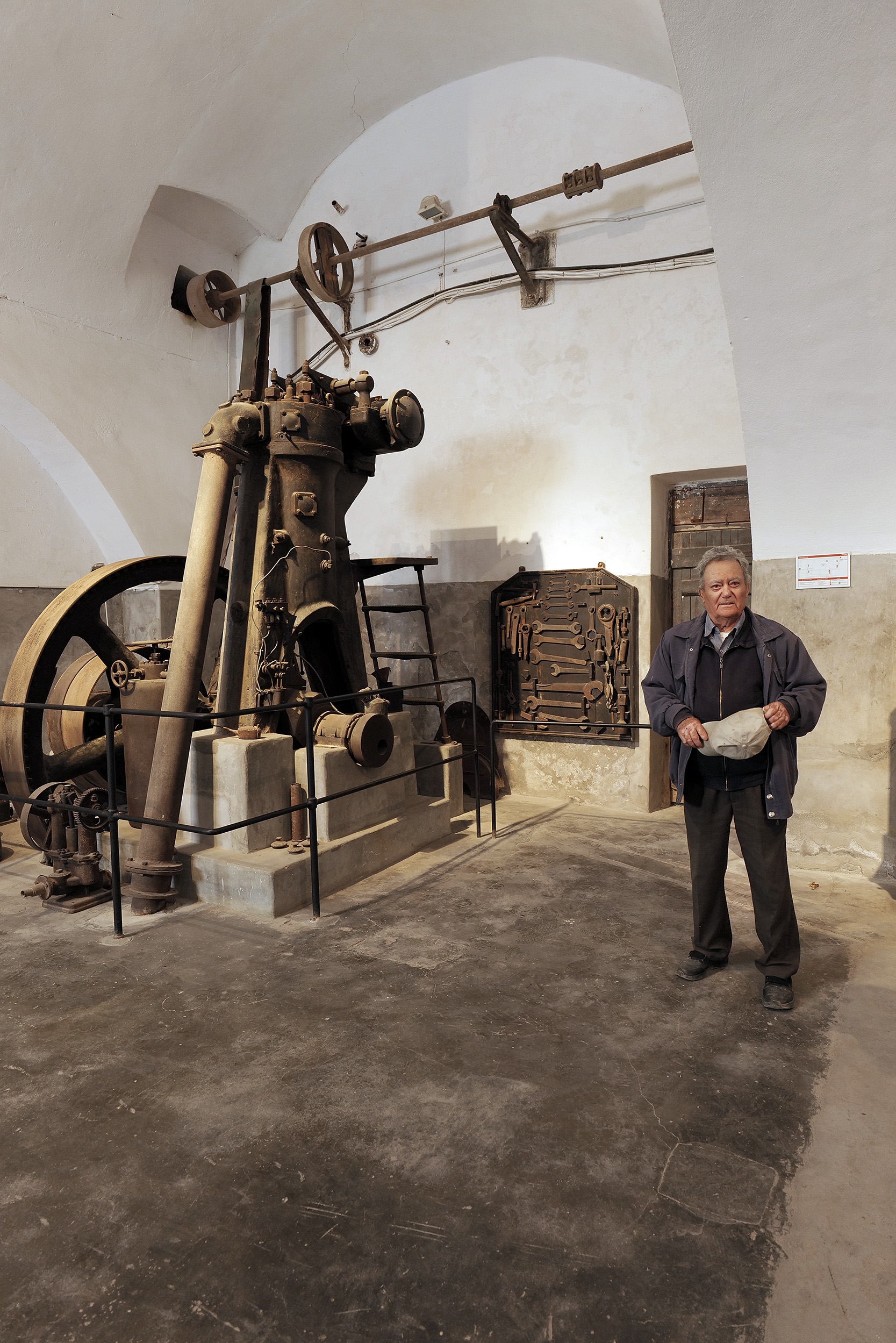 Εντυπωσιακές και οι τρεις ντιζελομηχανές, μεταξύ των οποίων μία από τις παλαιότερες παγκοσμίως, γερμανική του 1898 βάρους 2,5 τόνων που κατασκευάστηκε στην Ελβετία και ανέβηκε ως το εργοστάσιο από τα Φηρά με τη βοήθεια ξύλινων κατασκευών. Μία ακόμη, 55 βιομηχανικών ίππων, παρέμεινε σε λειτουργία ως το 1952 οπότε και έφτασε το ηλεκτρικό ρεύμα στη Βλυχάδα με αφορμή το γάμο του Γεωργίου Νομικού. Τέτοιο ήταν το κύρος της οικογένειας που έχει συνδέσει το όνομά της με την παραγωγή ντομάτας και πελτέ. Πριν φτάσετε στο τελευταίο μέρος της επίσκεψης και στο συγκινητικό βίντεο με την αντιπαραβολή παλαιού αρχειακού υλικού με σύγχρονο, έχετε το νου σας μήπως παράλληλα με σας βρίσκεται στο εργοστάσιο κάποιος από τους παλιούς εργάτες. Εμείς είχαμε την τύχη να συναντήσουμε τον κ. Αντώνη Βάλβη, τον εμβληματικό «Μαστραντώνη», δεξί χέρι του ιδιοκτήτη που θα δείτε σε κάποιο από τα διοράματα με τον εγγονό του εν ώρα εργασίας. «Μεγάλωσα στο εργοστάσιο από 2,5 χρονών γιατί ο πατέρας μου ήταν φύλακας εδώ. Δούλευα από τα 7 μου χρόνια κι ο κ. Νομικός με έστειλε να σπουδάσω στον Πειραιά» μας εξιστορούσε την προσωπική του ιστορία, αναπολώντας το παρελθόν με νοσταλγία, καθώς έβαζε μπρος τις ντιζελομηχανές για να ζωντανέψει για άλλη μια φορά και για εμάς και για τον ίδιο, εκείνη η χρυσή εποχή.