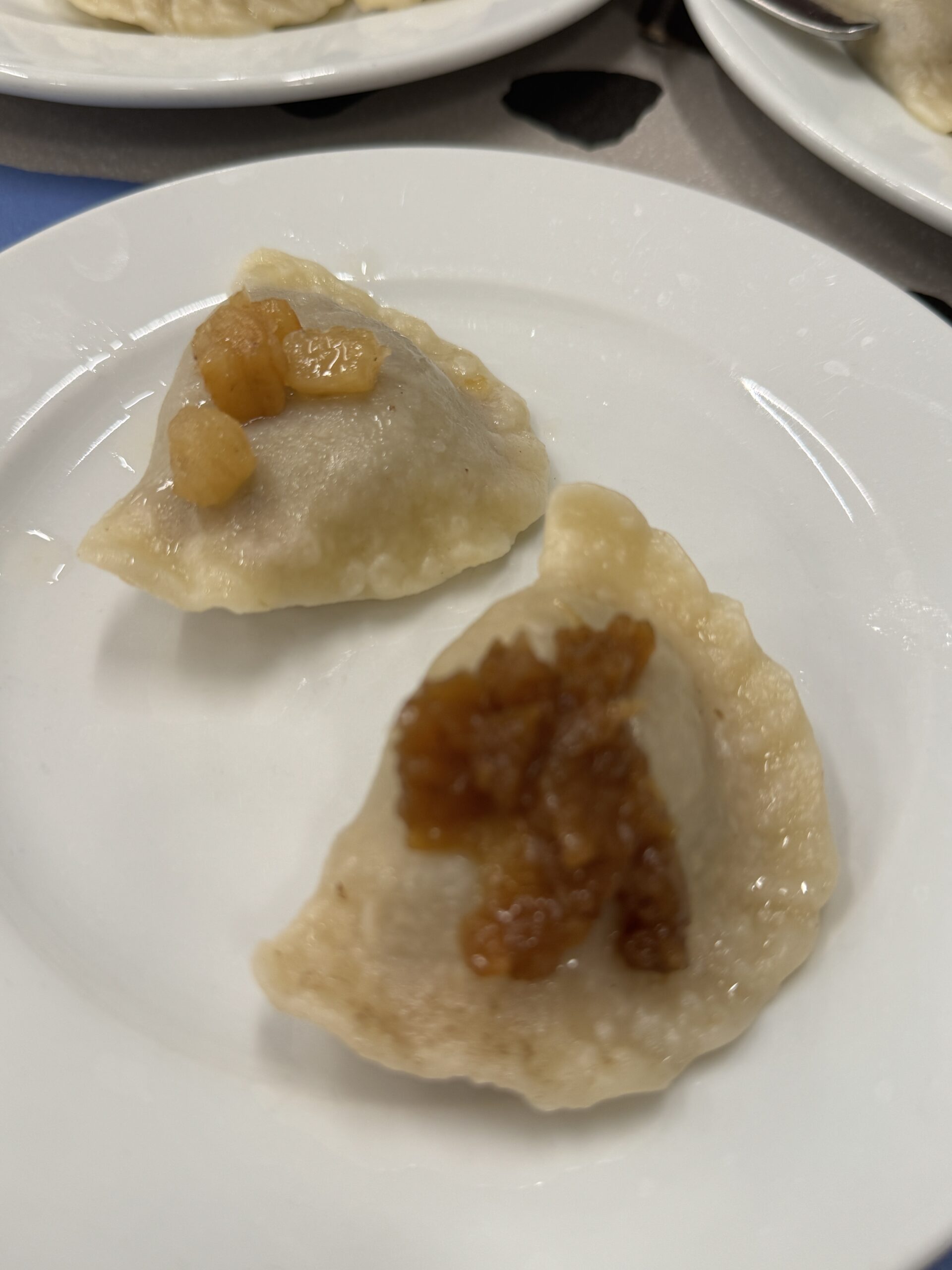 Τα pierogies συνοδεύονταν από εξαιρετικά συνοδευτικά, που προσέθεταν επιπλέον επίπεδα στις γεύσεις: