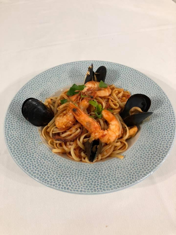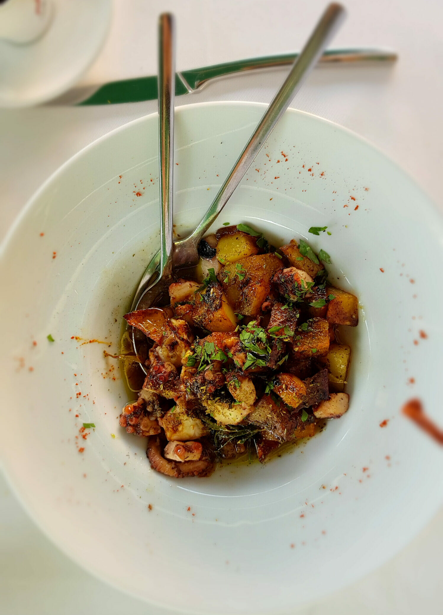 Fine dining ξενοδοχειακό εστιατόριο στη σκιά ενός αιωνόβιου πεύκου, σε μια αυλή γεμάτη με έργα τέχνης. O Θασίτης σεφ Γιάννης Μαρινόπουλος συνδυάζει ευφάνταστα πολυτελή υλικά και προϊόντα από μικρούς παραγωγούς του νησιού και δημιουργεί ενδιαφέροντα πιάτα με σύγχρονες τεχνικές: πεσκανδρίτσα τυλιγμένη σε χαμόν pata negra, με αυγά βασιλικής ρέγγας σε ψαροζωμό αρωματισμένο με κρόκο Κοζάνης, «ραβιολόνε» αστακού, με γαλάκτωμα παρμεζάνας και σάλτσα από κοκοράκι, καλαμάρι Θάσου σε ώσμωση, με σορμπέ lime και καβουρντισμένο αμύγδαλο, φιλέτο φασιανού με ανιολότι γεμιστό, με πεκορίνο, ρομάνο, αχλάδι, μπρεζέ και σύκο καραμελωμένο φλαμπέ.