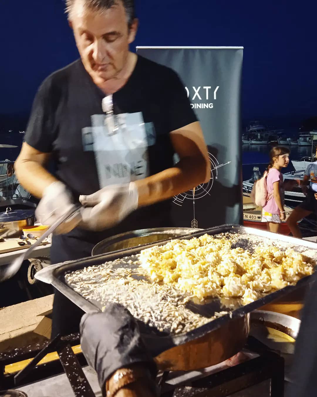 Το τυρί, το μέλι, τα ψάρια και το λάδι ασφαλώς ήταν οι λαμπεροί και πιο περίοπτοι πρωταγωνιστές αυτού του διημέρου και όχι άδικα. Με αυτά τα υλικά προτίμησαν να καταπιαστούν και οι σεφ της περιοχής σε ένα live cooking session, από το οποίο «κλέψαμε» νέες συνταγές. Οι χαρισματικοί Χαράλαμπος Φαναριώτης, Νικολέττα Ταλαγάνη και Γιώργος Φασίλης, έβαλαν κυριολεκτικά φωτιά στα τηγάνια και την περιέργεια μας για νέες γευστικές συγκινήσεις.