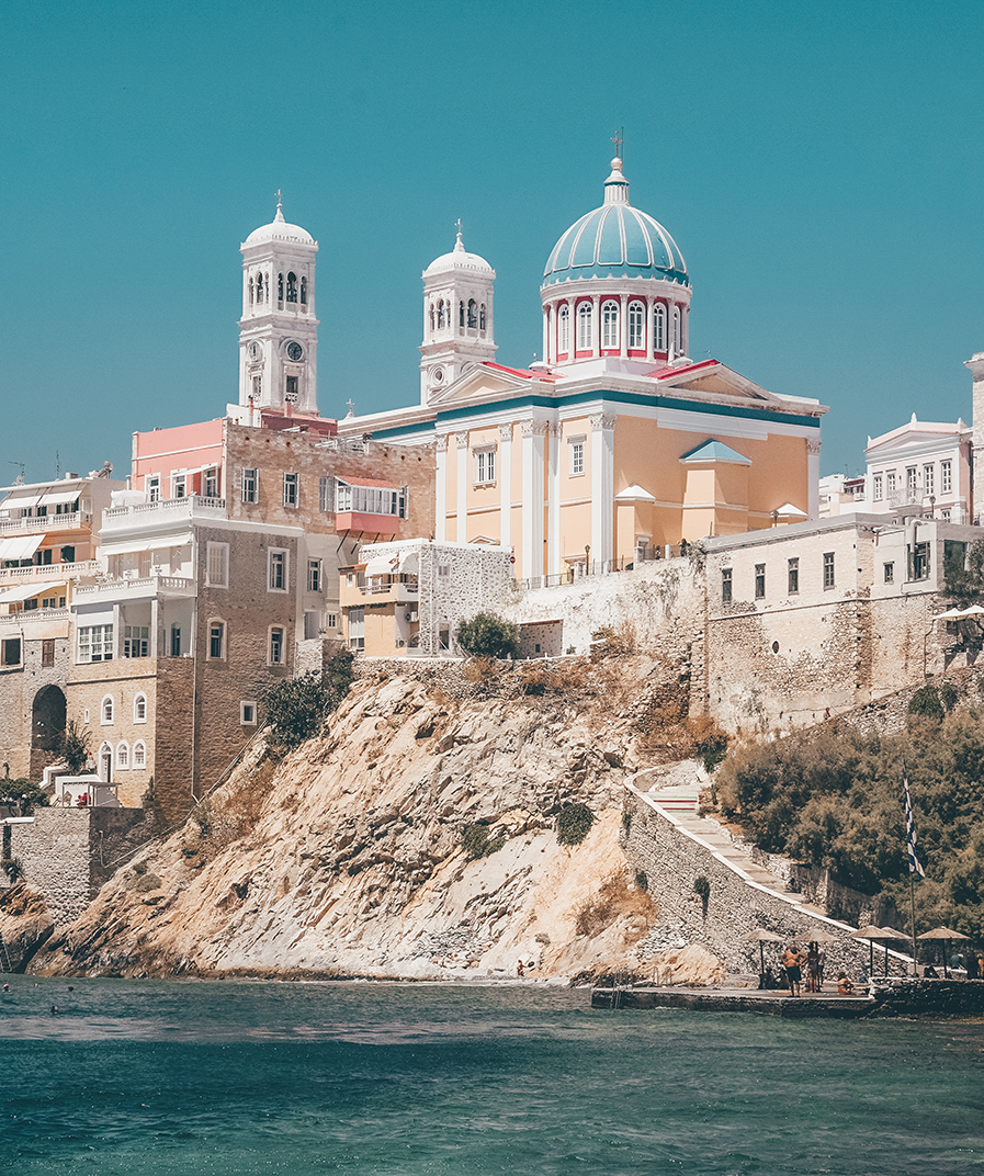 Πρώτη στάση σε αυτό το μεγάλο ταξίδι οι Κυκλάδες. Το 1822, η Ερμούπολη της Σύρου βρισκόταν στα πρώτα στάδια διαμόρφωσής της, εξελισσόμενη γρήγορα σε σημαντικό εμπορικό και ναυτιλιακό κέντρο της νεότερης Ελλάδας. Μια περιοχή που συγκέντρωνε λιμενεργάτες, βιοτέχνες, εργάτες και ανθρώπους του μόχθου και αναπτυσσόταν ραγδαία στο κέντρο των Κυκλάδων. Αναμενόμενο ήταν να συγκεντρωθούν εδώ Έλληνες πρόσφυγες από περιοχές της Ανατολής, που έφεραν μαζί τους παραδόσεις, συνταγές και τεχνικές.