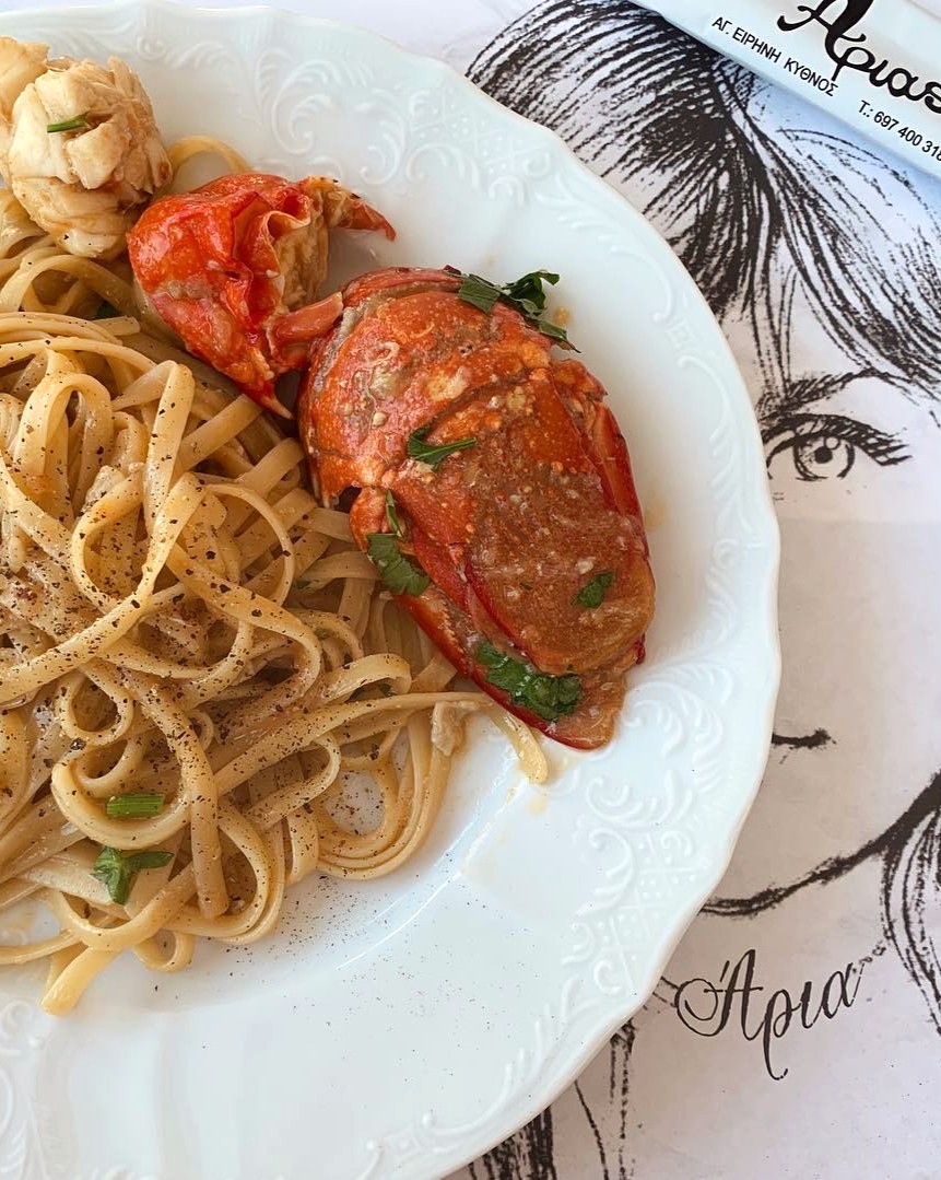 Στον παραμυθένιο κολπίσκο της Αγίας Ειρήνης, το Arias σερβίρει παραδοσιακή ελληνική θαλασσινή κουζίνα. Αυτό το οικογενειακό εστιατόριο, που λειτουργεί εδώ και τρεις γενιές, έχει διαμορφώσει μια συνέχεια βασισμένη στην αμείωτη αφοσίωση στην ποιότητα και την αυθεντικότητα. Υπό τη διεύθυνση του Κώστα Βλαστάρη, εγγονού του ιδρυτή, το εστιατόριο διατηρεί την παράδοση του φρέσκου ψαριού και των αστακών, τα οποία διαλέγονται από τον ίδιο τον ιδιοκτήτη, μια πρακτική που εγγυάται την εξαιρετική ποιότητα των πρώτων υλών. Η Ελένη, σύζυγος του ιδιοκτήτη, αναλαμβάνει τη μαγειρική με ευλάβεια προς τις οικογενειακές παραδοσιακές συνταγές, εμπλουτίζοντας τη γεύση με βιολογικά βότανα και λαχανικά από την ιδιόκτητη φάρμα.