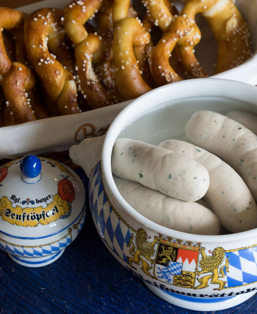 Δεν υπάρχουν ακριβείς πληροφορίες για την προέλευση του Weißwürst, του λευκού λουκάνικου που φτιάχνεται από μοσχάρι, χοιρινό μπέικον από το πίσω μέρος του ζώου, κρεμμύδι και διάφορα μυρωδικά. Πάντως, η πλέον δημοφιλής ιστορία αναφέρει πως δημιουργήθηκε κατά λάθος. O Sepp Moser ήταν ένας νεαρός χασάπης ο οποίος δούλευε στο εστιατόριο Zum Ewigen Licht, δίπλα στο χασάπικό του. Το 1857, την τελευταία Κυριακή πριν το ξεκίνημα της νηστείας της Σαρακοστής, ο Moser έφτιαχνε λουκάνικα για τους πελάτες. Καθώς το φαγητό τελείωνε του ζητήθηκε να φτιάξει και άλλα λουκάνικα. Καθώς είχε χρησιμοποιήσει τα πιο σκληρά περιβλήματα από αρνί αναγκάστηκε να χρησιμοποιήσει τα λεπτότερα από χοιρινό. Αλλά αντί να τα ψήσει επέλεξε να τα βράσει για 10 λεπτά καθώς φοβόταν πως τα λεπτότερα περιτυλίγματα δεν θα άντεχαν. Ο αρχικός σκεπτικισμός των πελατών άλλαξε γρήγορα σε κολακευτικά λόγια γι’ αυτό έγινε γνωστό ως το πρώτο Weisswurst του Μονάχου.