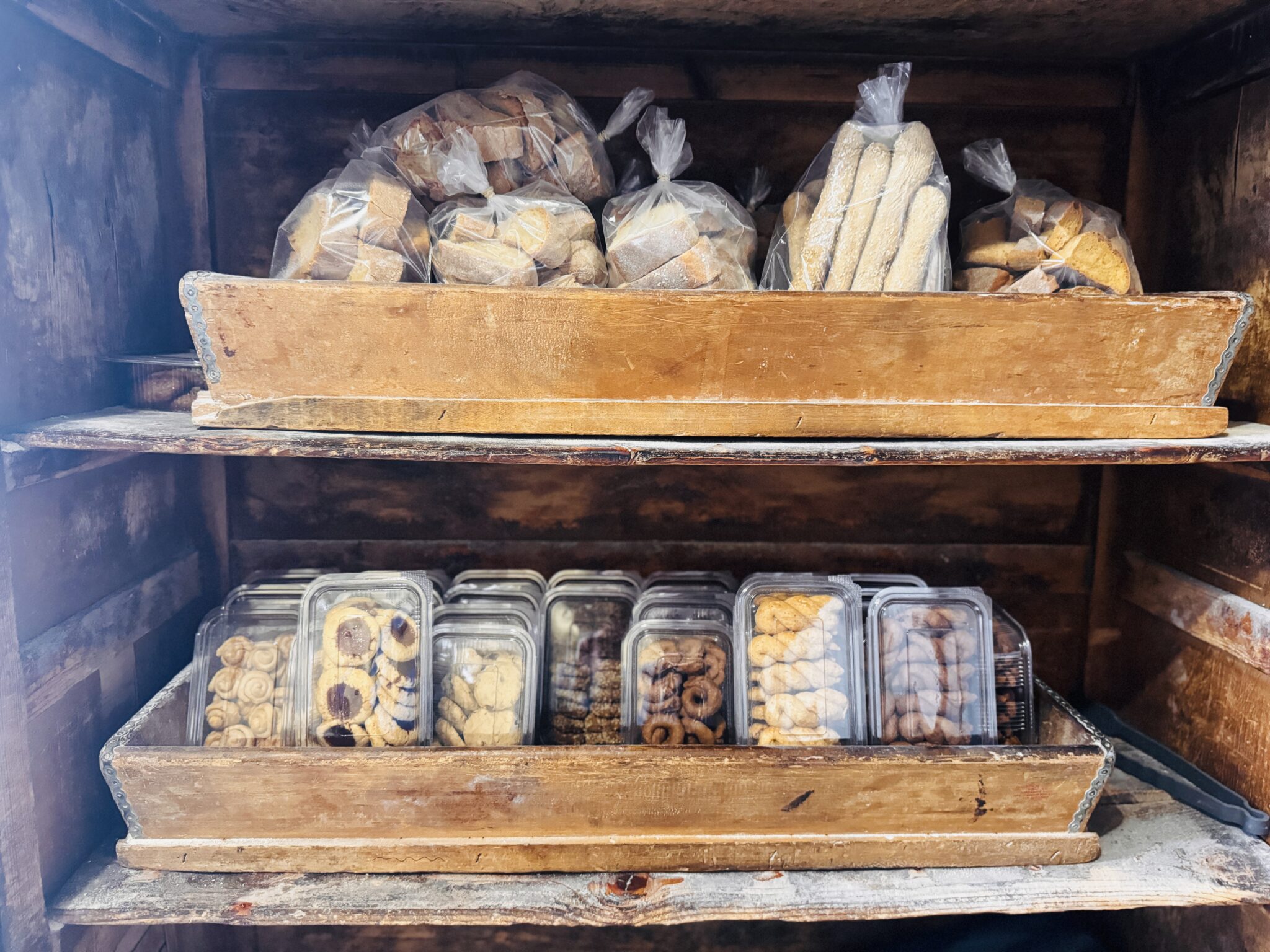 Δίπλα του, τα σκαλτσούνια της κυρίας Βούλας ακολουθούν την ίδια λογική: λεπτό φύλλο, σωστές αναλογίες στη γέμιση, χωρίς υπερβολές. Τα παξιμάδια τους, όμως, αξίζουν ξεχωριστή αναφορά. Σπιτικά, με πυκνή υφή και γεύση αυθεντική. Είναι από εκείνα που παίρνεις σίγουρα μαζί σου φεύγοντας.