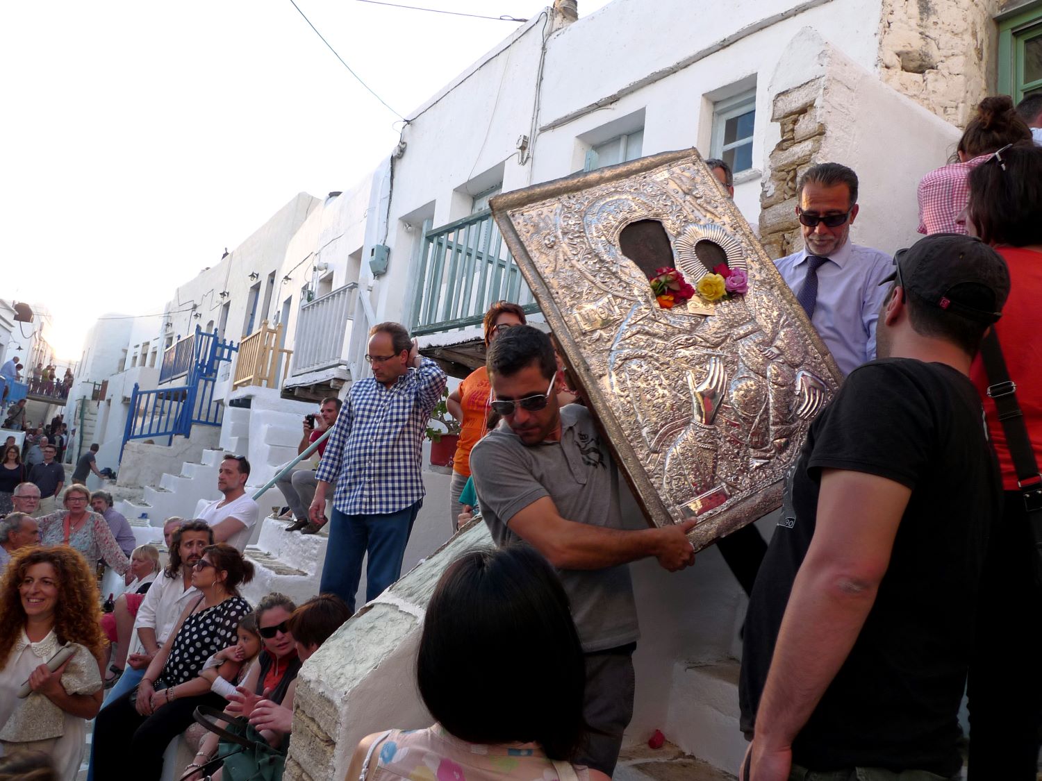 Η περιφορά της σεβάσμιας Εικόνας είναι κατά βάθος μια περιήγηση στα μύχια της ψυχής του καλλίγραμμου νησιού και του εσωτερικού τρόπου ζωής των αυτοχθόνων κατοίκων του. Είναι μία ζωντανή παράσταση για το πώς κυλά η ζωή εκτός τουριστικής σεζόν, με τα έθιμα, τα ήθη, τις παραδόσεις και τις μητροπαράδοτες γεύσεις, στην κοσμοπολίτικη Χώρα, στα αρχοντικά, στα ξενοδοχεία και στα εστιατόρια που τώρα είναι ανοιχτά.