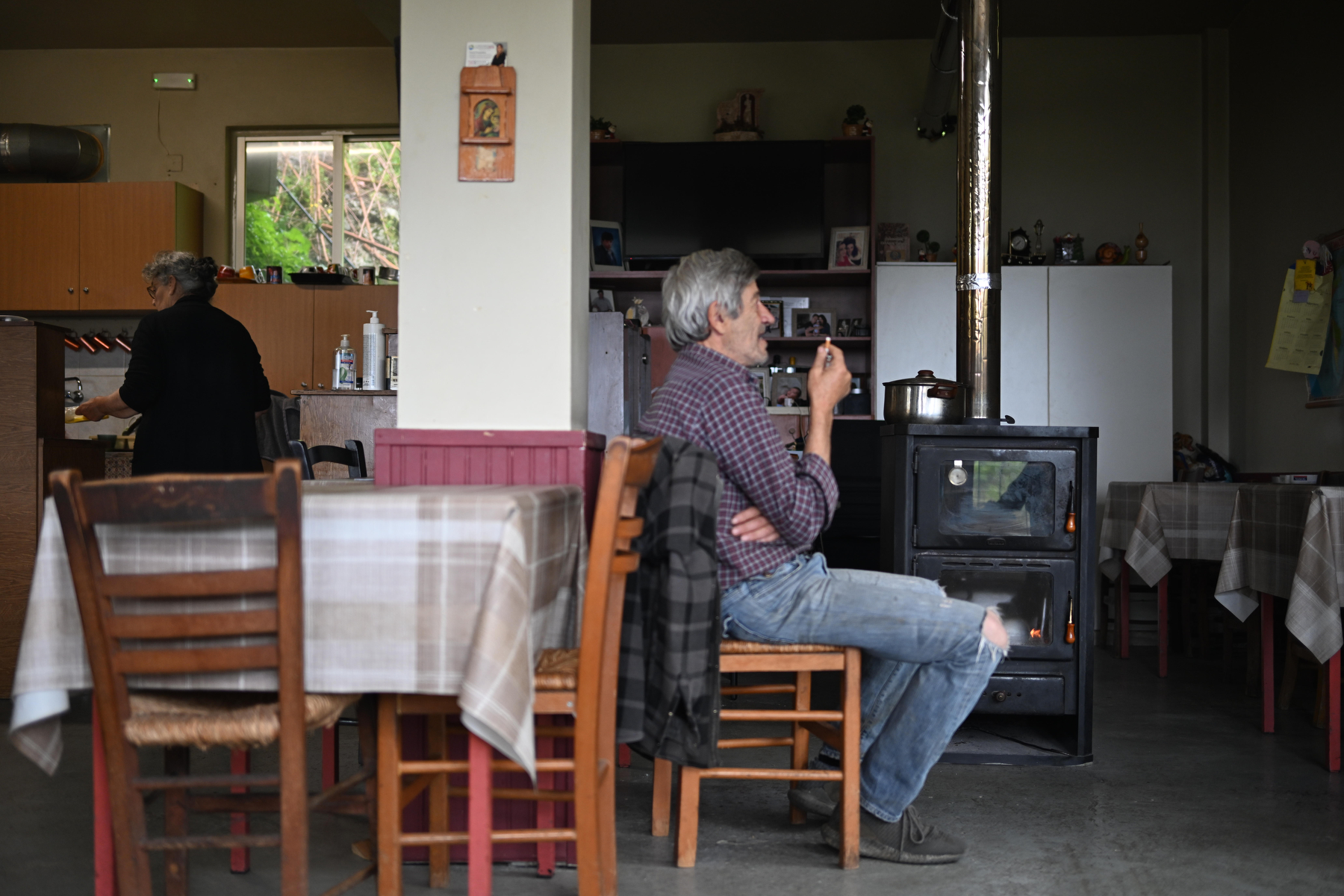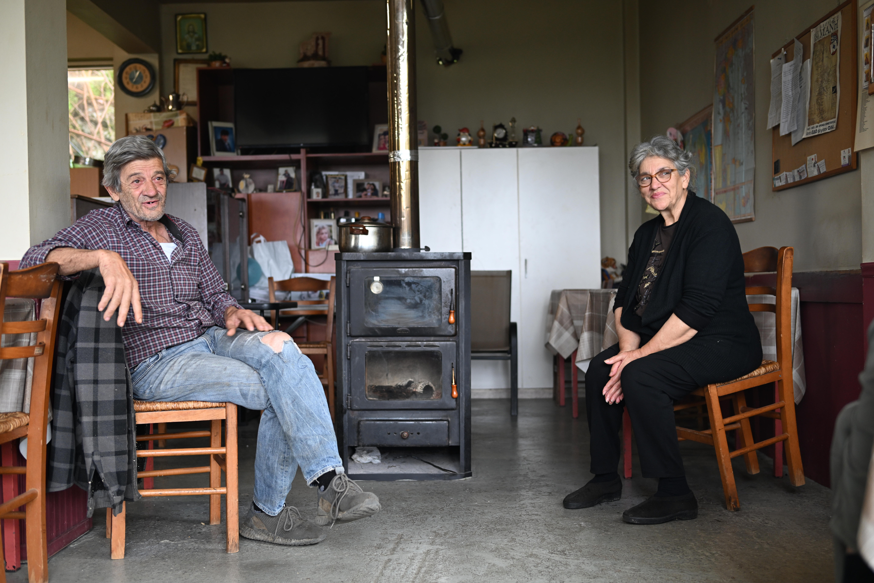 «Το σπίτι μας είναι εδώ από πάνω», εξηγεί η κυρία Σοφία, δείχνοντας με το χέρι της. «Ουσιαστικά όλη μας την ημέρα την περνάμε εδώ». Για εκείνη, το καφενείο εκτός από χώρος εργασίας, είναι και προέκταση του σπιτιού της, της ζωής της.