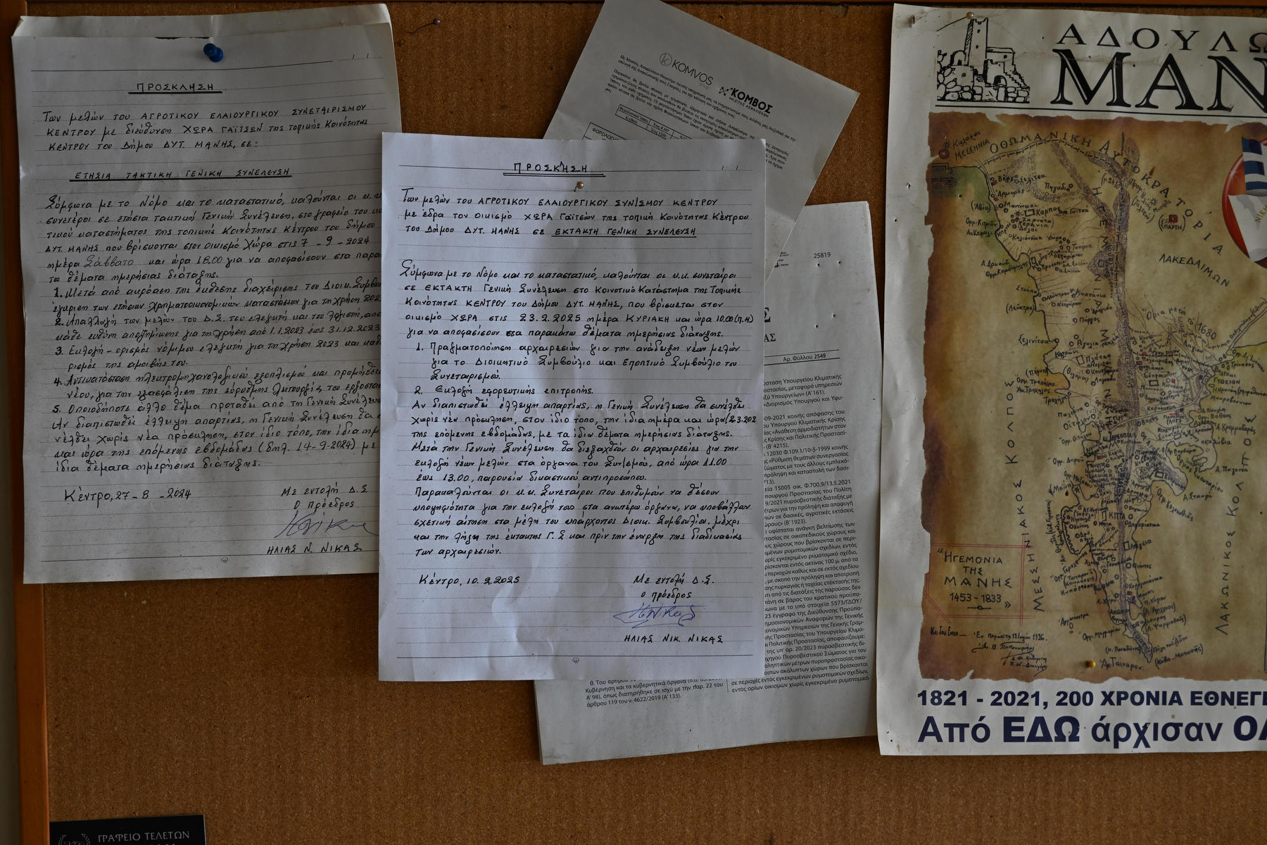 Είναι σχεδόν μεσημέρι όταν περνάμε το κατώφλι του καφενείου της κυρίας Σοφίας -ενός χώρου που από το 1983 αποτελεί το κέντρο της κοινωνικής ζωής του χωριού. Η πρώτη εικόνα είναι απλή αλλά αποκαλυπτική: ένας κύριος απολαμβάνει μόνος το τσίπουρό του, συνοδευόμενο από έναν μεζέ που, όπως μάθαμε αργότερα, έχει ετοιμαστεί από τα χέρια της οικοδέσποινας. Η κουζίνα, διαχωρισμένη από τον κυρίως χώρο με έναν ψηλό ξύλινο πάγκο, λειτουργεί σαν θέατρο όπου η κυρία Σοφία πρωταγωνιστεί. Τη στιγμή που μπαίνουμε, τα χέρια της ζυμώνουν με υπομονή και δεξιοτεχνία κύμα -η κίνηση αυτή, μια τελετουργία που επαναλαμβάνεται εδώ και τέσσερις δεκαετίες. «Καλώς ορίσατε», μας χαιρετά, με μια φωνή ζεστή και γνώριμη, σαν να μας περίμενε από καιρό. «Θα πιείτε ένα τσιπουράκι;». Η πρόταση αυτή είναι μια πρόσκληση σε ένα ταξίδι γεύσεων και αναμνήσεων που έχει τις ρίζες του βαθιά στη λακωνική γη.
