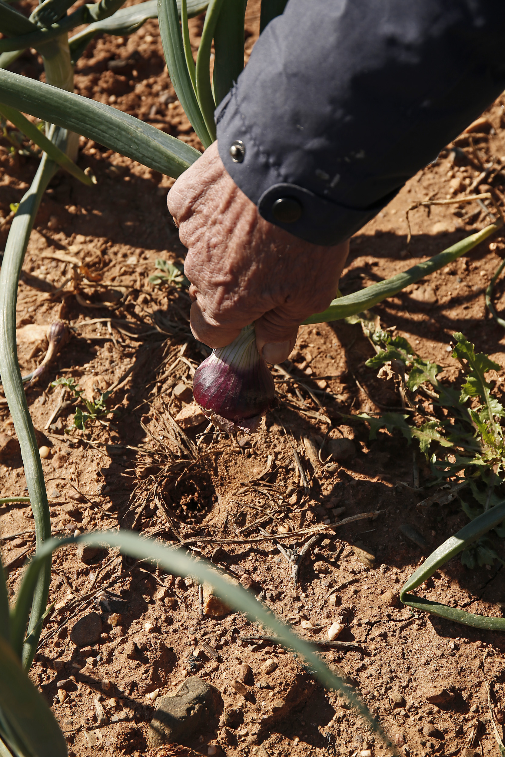 Το ραντεβού με τον παραγωγό κρεμμυδιών, Γιώργο Παπούλη, έχει συμφωνηθεί να γίνει πολύ πρωί στο σταθμό καυσίμων των Αγίων Αποστόλων, λίγα χιλιόμετρα βορειότερα της Νεάπολης. Συμφωνούμε να κατευθυνθούμε προς τα χωράφια παραγωγής των βατικιώτικων κρεμμυδιών με το δικό του αυτοκίνητο, ένα «μαθημένο» στα εδάφη αλλά και τη σκληρή δουλειά, λευκό αγροτικό. Είναι ένας μήνας και κάποιες ημέρες πριν τη συγκομιδή της σοδειάς, οπότε τα φυτά δεν θα δείξουν όλη τους την τελειωτική μεγαλοπρέπεια, αλλά αυτό δεν πτοεί την περιέργεια.
