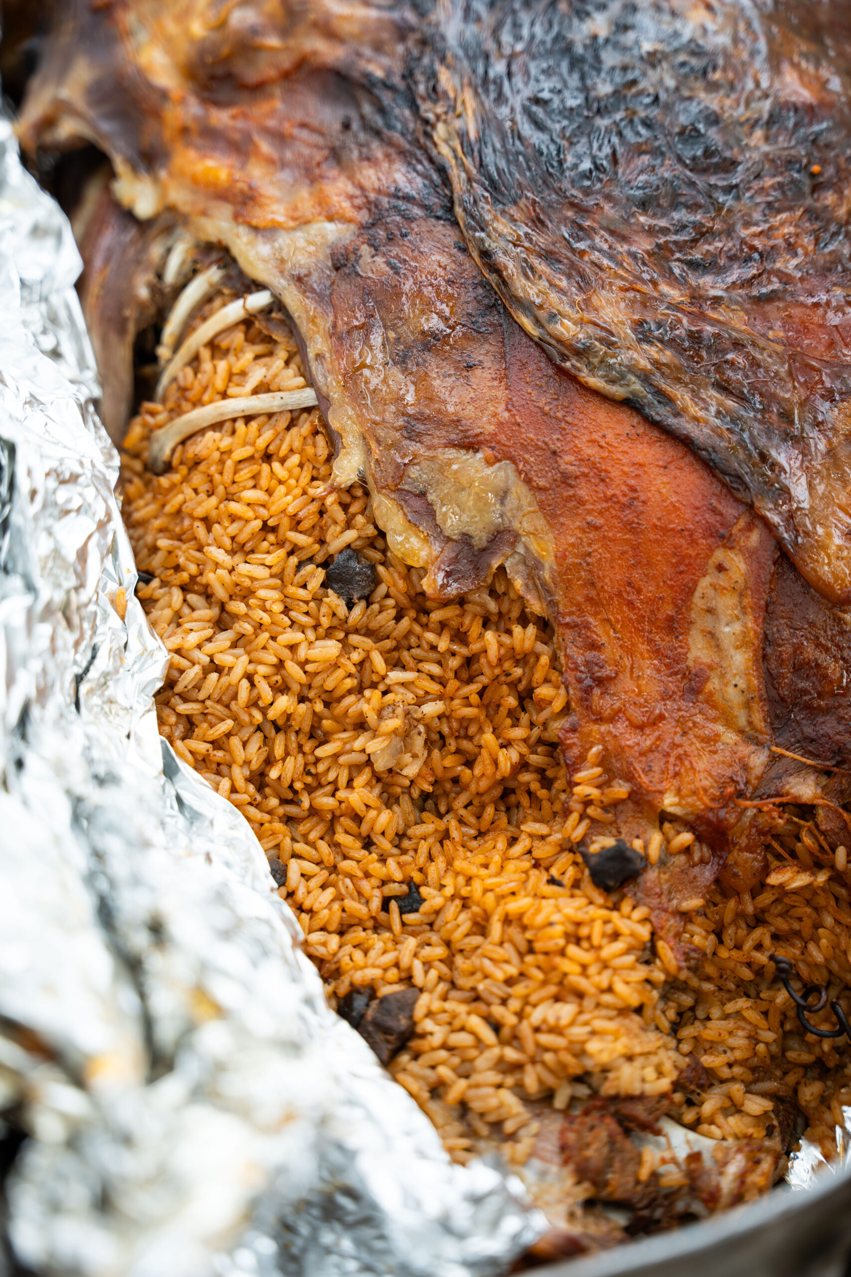 Δεν μείναμε όμως μόνο σε αυτά. Η Μιχαλίτσα είχε ήδη στο φούρνο το μουούρι. Είναι το κατσίκι γεμιστό με ρύζι και συκωτάκια. Αφού βάλουν τη γέμιση, το κλείνουν και το τοποθετούν είτε στη γάστρα είτε στο πήλινο. Το σφραγίζουν και το βάζουν στο φούρνο για όλη τη νύχτα. Εμείς το βρήκαμε σχεδόν έτοιμο για να ξεφουρνιστεί.