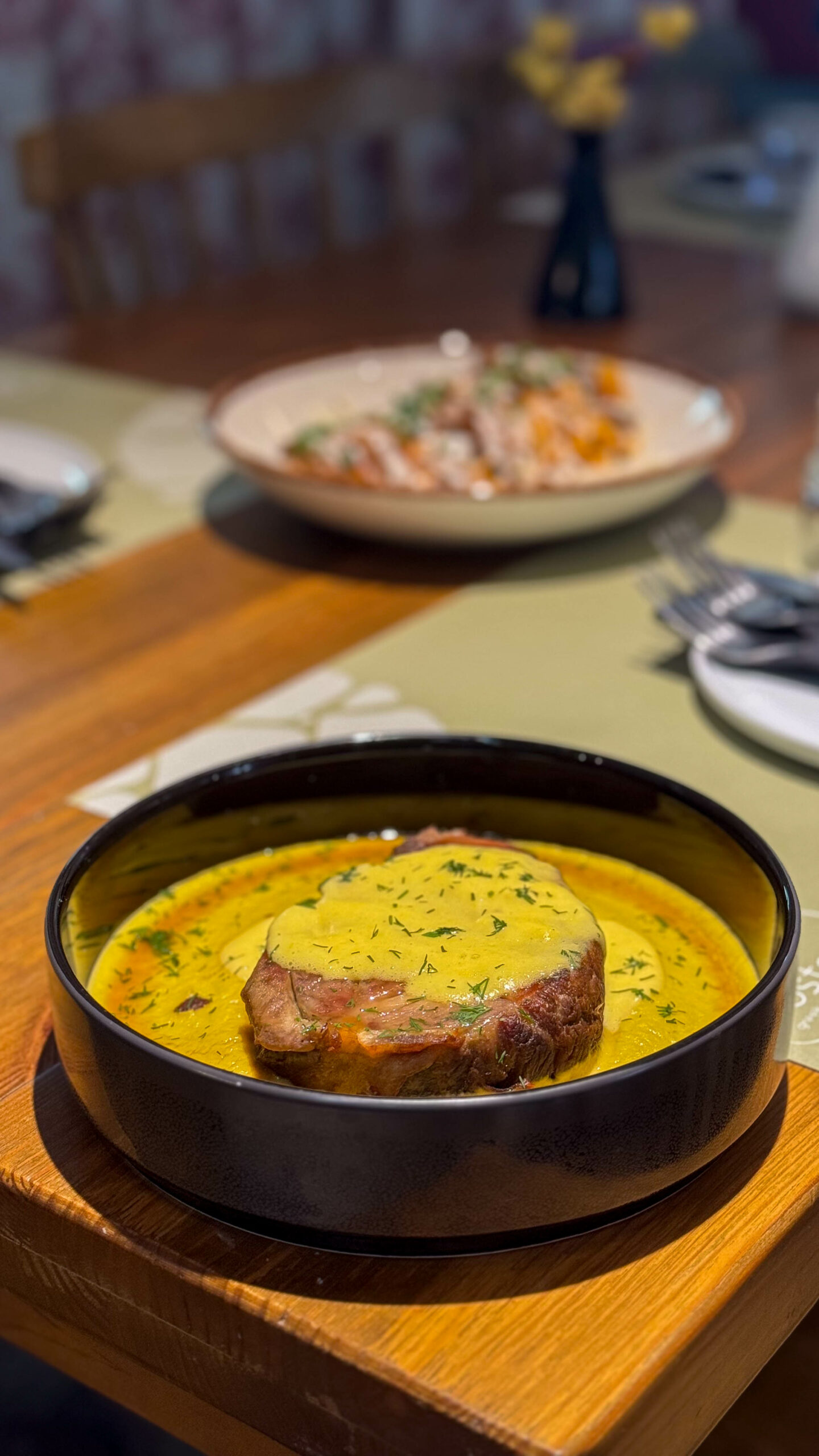 Σήμερα, ο Κωνσταντίνος βρίσκεται στο πηδάλιο της κουζίνας του εστιατορίου Bostani, στο ξενοδοχείο Rouista Tzoumerka Resort, του Βουργαρελίου. «Αυτό το μέρος είναι ιδιαίτερο», μας λέει καθώς ετοιμάζει τη γέμιση για τη χορτόπιτα, αναμειγνύοντας τρυφερό σπανάκι και σέσκουλα με μυρωδικά και μπαχαρικά. «Βρισκόμαστε στην καρδιά της Ηπείρου, μιας περιοχής με πλούσια γαστρονομική παράδοση». Η κουζίνα του Bostani, όπως μας εξηγεί, έχει ως βάση την ηπειρώτικη γαστρονομία, αλλά εμπλουτίζεται με στοιχεία και τεχνικές από τη Θεσσαλία, την ιδιαίτερη πατρίδα του σεφ. «Προσπαθώ να δημιουργήσω γέφυρες ανάμεσα στις παραδόσεις, να συνδέσω τις γεύσεις που με μεγάλωσαν με τις γεύσεις του τόπου όπου τώρα δημιουργώ».