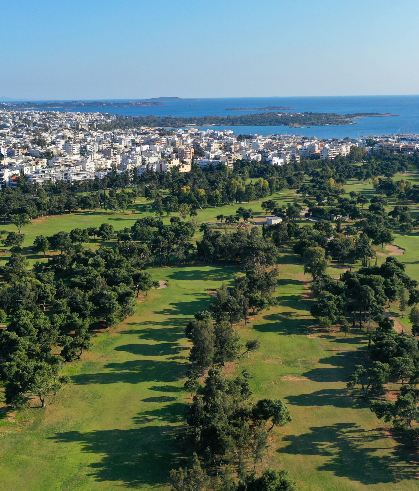 Μία τόσο κοσμοπολίτικη και «διεθνής» περιοχή είναι φυσικό να φιλοξενεί και το παλαιότερο γήπεδο γκολφ στην Ελλάδα. Τα 530 στρέμματά του λειτουργούν ως πνεύμονας πρασίνου αλλά ενίσχυσαν διαχρονικά και την εμπορική αξία της Γλυφάδας Το όνομα του γηπέδου είναι αφιερωμένο στον διασημότερο παίκτη του γκολφ στην Ελλάδα, τον Κωνσταντίνο Καραμανλή.