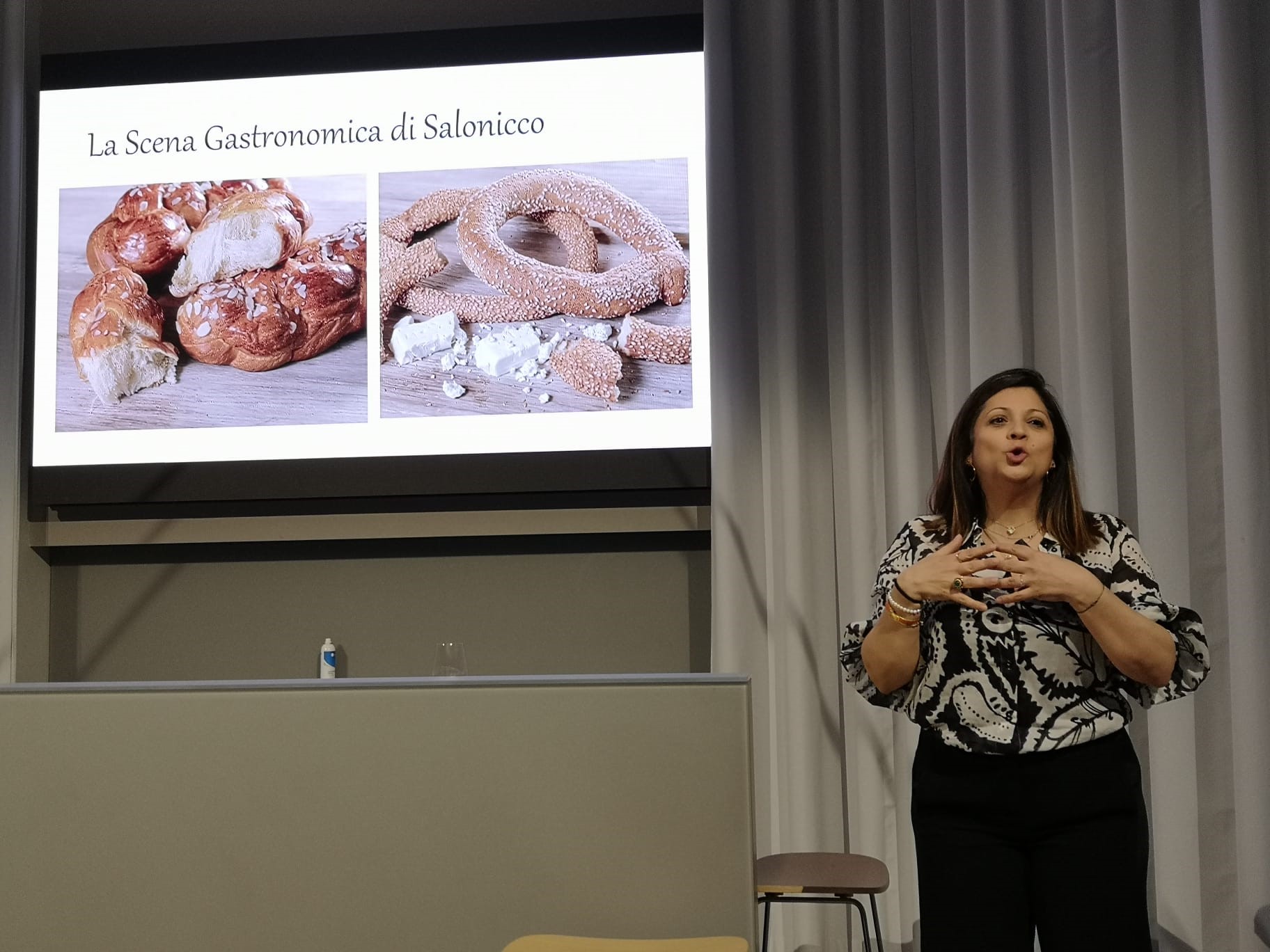 Πριν την έναρξη της προετοιμασίας των πιάτων η Προϊσταμένη ΕΟΤ Εξωτερικού Ιταλίας κα Κυριακή Μπουλασίδου προλόγισε την εκδήλωση επισημαίνοντας ότι «ο καλύτερος τρόπος για να γνωρίσεις ένα προορισμό είναι μέσα από τις γεύσεις του».