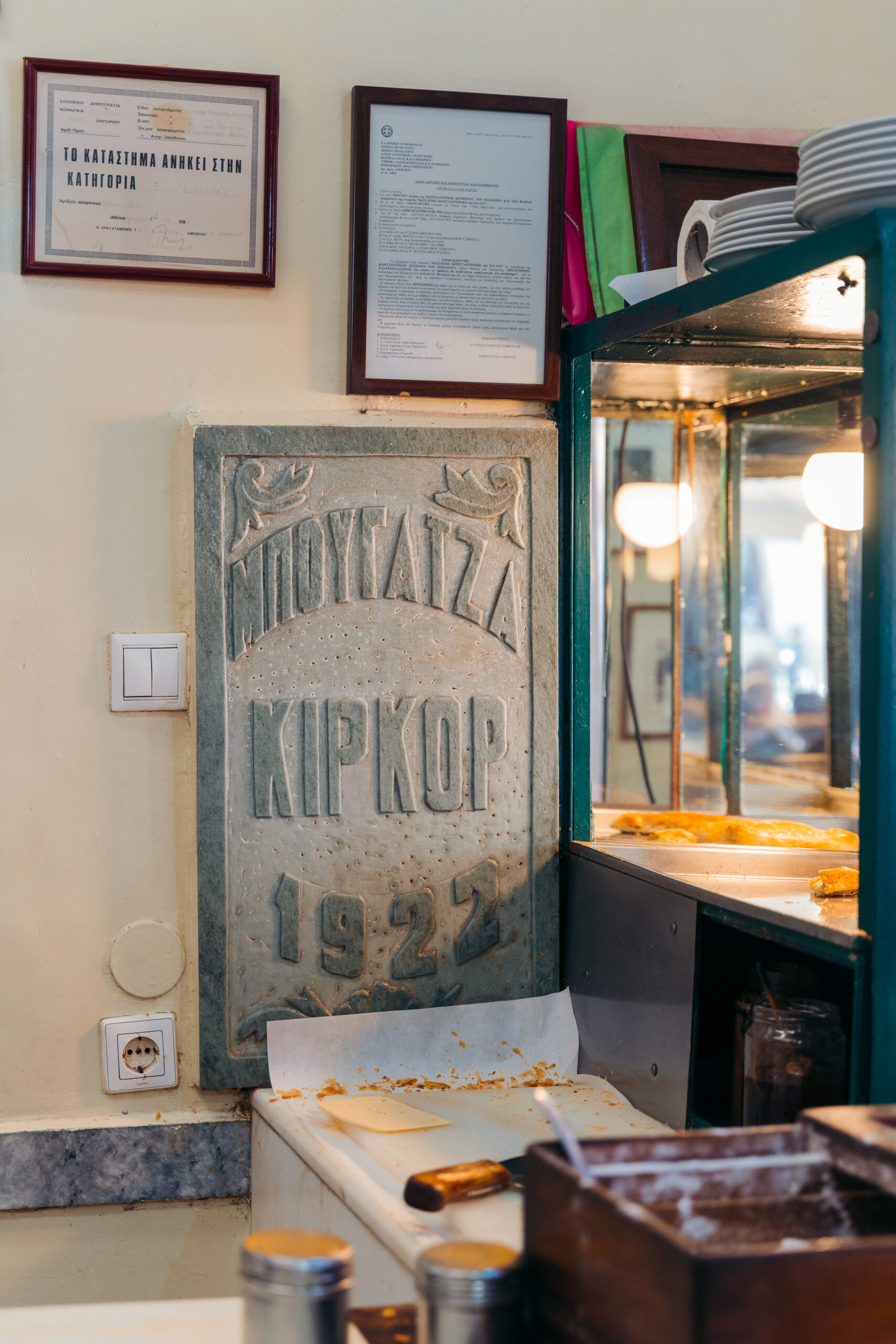 Δεν ξέρω αν υπάρχει άλλη ιεροτελεστία/χαρά/αφορμή για χάζι που να μην αρχίζει και να τελειώνει στο Κιρκόρ. Μπροστά ακριβώς από την περίφημη Κρήνη Μοροζίνι με τα εμβληματικά Λιοντάρια υπάρχει το μπουγατσάδικο του Κιρκόρ που συμπλήρωσε ήδη 100 χρόνια ζωής, με τις απογόνους της οικογένειας, Ελπίδα και Δέσποινα Κωνσταντινίδη να φροντίζουν να είναι όλα στην εντέλεια διατηρώντας ανέπαφη την αυθεντική συνταγή αιώνων. Το βούτυρο-ανάμεικτο αγελαδινό, γίδινο και πρόβειο-μοσχοβολάει από την πρώτη μπουκιά ενώ η σιμιγδαλόκρεμα εξακολουθεί να είναι εκείνη που έκανε διάσημο τον Αρμένη Κιρκόρ που έφερε την κρυφή συνταγή στο νησί. Τη ζητάω πάντα μισή-μισή, μισή μπουγάτσα με κρέμα και μισή με τυρί-και όταν έχω τύψεις ζητάω την πιο λάιτ εκδοχή της χορτόπιτας με αγριόχορτα της περιοχής. Άσε που εδώ μαθαίνεις περνάει όλο το Ηράκλειο και μαθαίνεις όλα τα νέα της Κρήτης.