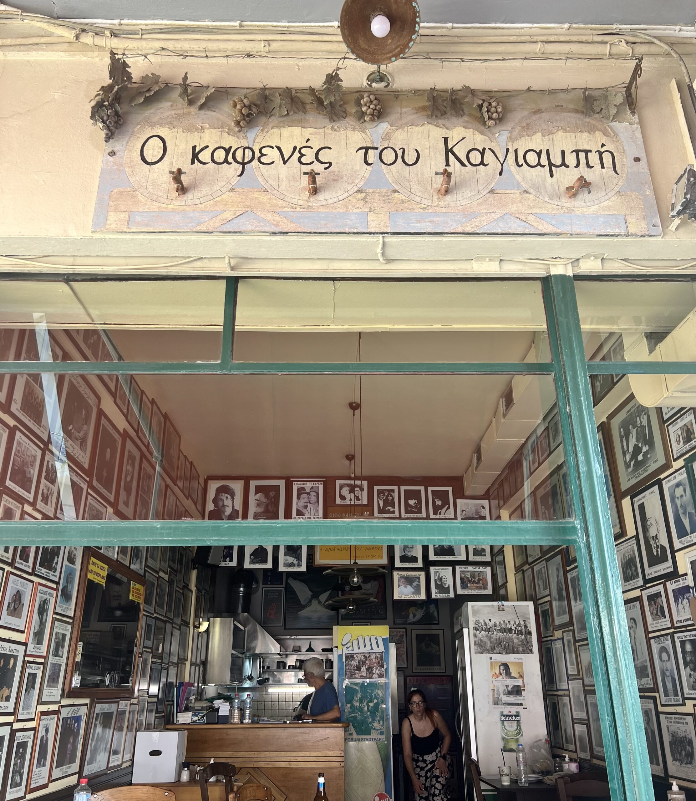 Δεν μπορείς, επομένως, να πας στο Ηράκλειο, αν δεν περάσεις από τον Καφενέ του Καγιαμπή αυτό το απίστευτο μέρος με τον αυθεντικό χαρακτήρα και τη μοναδική ατμόσφαιρα, που οφείλεται στον ίδιο τον σπιρτόζο ιδιοκτήτη Δημήτρη Καγιαμπάκη, εμβληματική φιγούρα της πόλης, ο οποίος, αν έχει χρόνο θα σου αφηγηθεί απίστευτες ιστορίες και θα σου φτιάξει με τα χεράκια του ό,τι τον εμπνέει η στιγμή (ζήτα οπωσδήποτε ομελέτα, χορτόπιτα και τρομερό ανθότυρο). Δεν θα ξεχάσεις ποτέ αυτό το μαγαζί με τον μοναδικό χαρακτήρα και τις φωτογραφίες στους τοίχους που λένε, από μόνες τους, τις ιστορίες του: αντάρτες του βουνού, ο Τσε και ο Άρης Βελουχιώτης, ο Γιάννης Ρίτσος και ο Ψαρογιώργης. Εν ολίγοις, το πνεύμα της Κρήτης παραμένει ζωντανό στα καφενεία της.