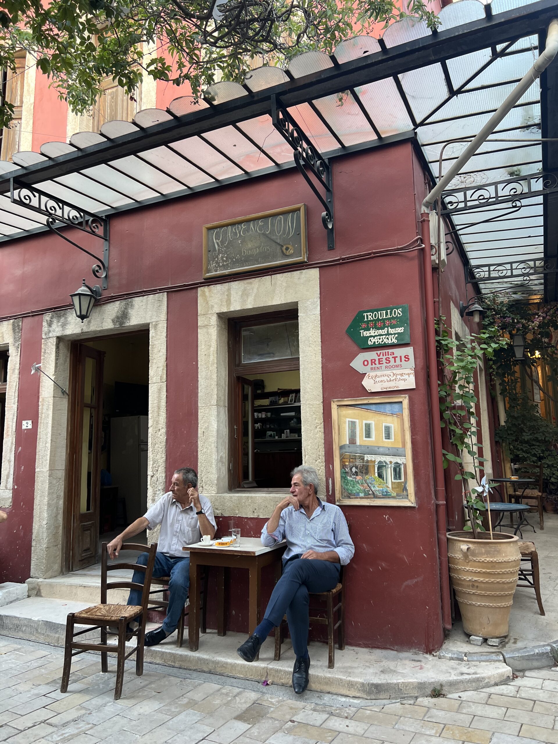 Τα Καφενεία στην Κρήτη δεν είναι μόνο θεσμός: είναι η ίδια η ταυτότητά της. Από τον «Καπετάν Μιχάλη», στο ομώνυμο μυθιστόρημα του Καζαντζάκη, που έμπαινε έφιππος στον τότε καφενέ, μέχρι σήμερα, τα καφενεία μετατράπηκαν με τα χρόνια σε μέρη συζητήσεων και γευστικής ευδαιμονίας, όπου μπορούσε κανείς να πιει τη ρακή με ένα μεζέ. Στα καφενεία, εν τέλει, σερβίρονται οι πιο παραδοσιακοί μεζέδες της Κρήτης και είναι τα μέρη που πρέπει να επισκεφθεί κανείς για να μυηθεί στο πνεύμα της.