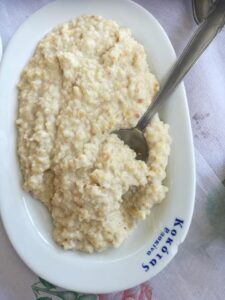 Για γλυκό, η κ. Γιούλα ετοιμάζει μπομπότα. Μια πίτα με καλαμποκάλευρο, νερό, ελαιόλαδο, πορτοκάλι και ζάχαρη όταν είναι νηστεία ή με νερό και βούτυρο τις άλλες ημέρες. Παλιά, όσοι δεν είχαν ζάχαρη, το έψηναν σκέτο και το περιέχυναν με μέλι ή πετιμέζι ή χαρουπόμελο.