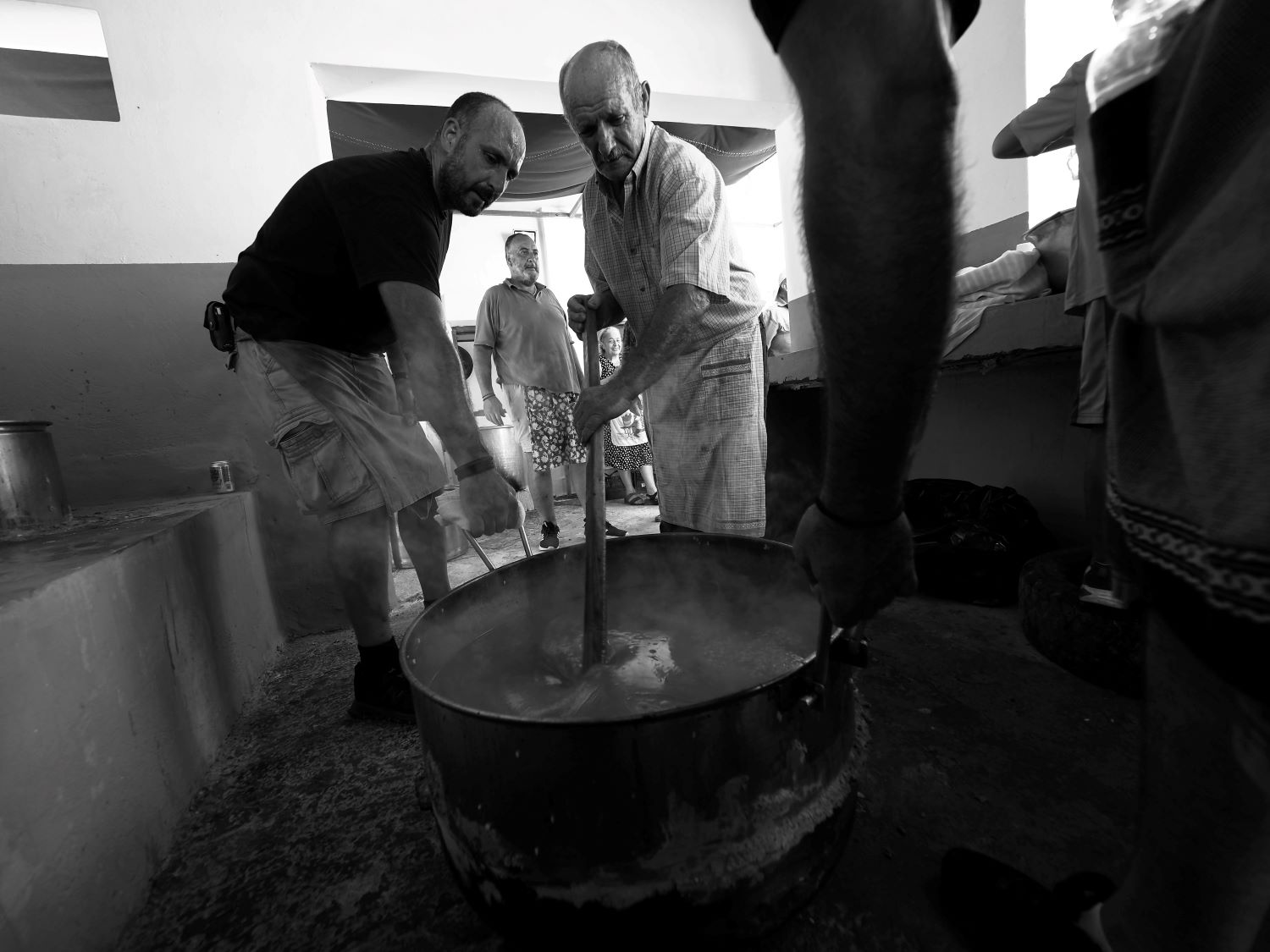Τα μαγειρεία του γλεντιού είναι ένας κόσμος ολόκληρος. Μαγειρεύουν μόνον άνδρες σε μεγάλα καζάνια – συχνά χάλκινα από αυτά που χρησιμοποιούν για την τυροκόμηση στα μητάτα – προσαρμοσμένα με λάσπη επάνω στις «παρανιστιές», κάτω από τις οποίες καίει φυσική φωτιά από πραγματικά ξύλα. Μέρες πριν, όλα κατατείνουν στην αποφασιστική στιγμή του φαγητού του γλεντιού, τότε που θα κατέβει από τη φωτιά το πρώτο καζάνι με το φημισμένο κασιώτικο πιλάφι που τσιτσιρίζει καθώς αρτύζεται με τον καυτό βούτυρο. Το μυστικό του είναι το πυκνό σε γεύση ζουμί που προέκυψε από ολόκληρα πρόβατα και κατσίκια που βράζουν σε τεράστια καζάνια ή από το κοκκίνισμα των μερίδων του κρέατος που κι αυτές θα μπουν στο πιάτο του πανηγυριού, μαζί με το πιλάφι και τις τηγανιτές πατάτες που ετοιμάζονται παράλληλα.